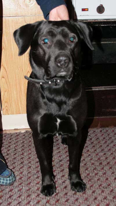 Найдена сегодня (11.03.2013), в районе улиц Транспортная и Карла Маркса. Увязалась за нашими знакомыми, живущими в районе улицы Верхняя-Железнодорожная. Теперь пока там обитает. Собака с ошейником чёрного цвета. Молодая. Обучена - знает команды ОКД, не агрессивна.