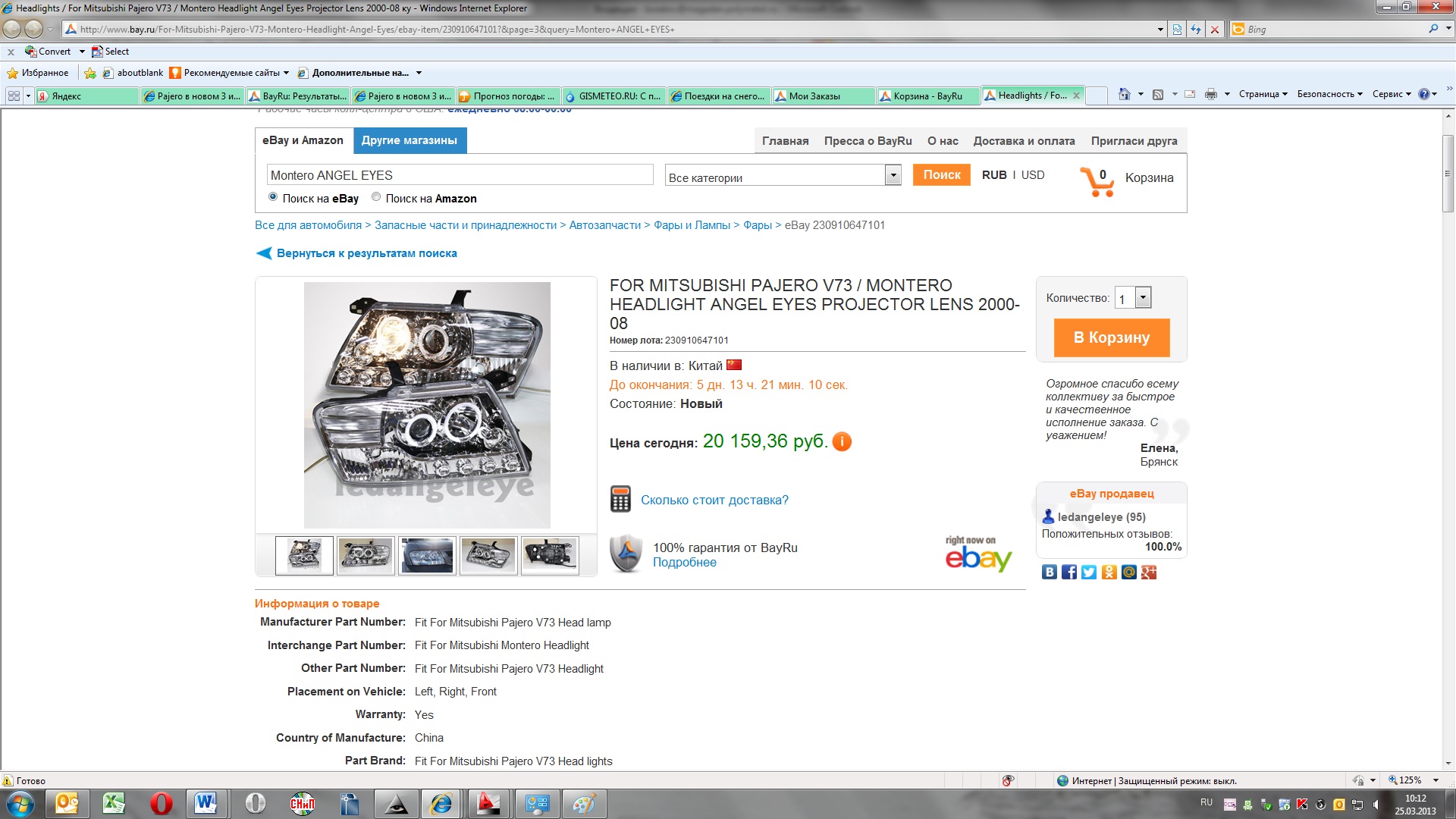 Ценник на Ебай, не ниже 20 т.руб. Я тоже сначало на Ебай смотрел, предложений очень мало. Этот товар там не выгодно брать. Доставка космос. +Наша таможня может превратить фары в куски разбитого пластика. Заваливают посылкы Сообщение отредактировал ret - 25.3.2013, 10:31 -------------------- ¡ʁɔwǝнdǝʚǝdǝu оdоʞɔ