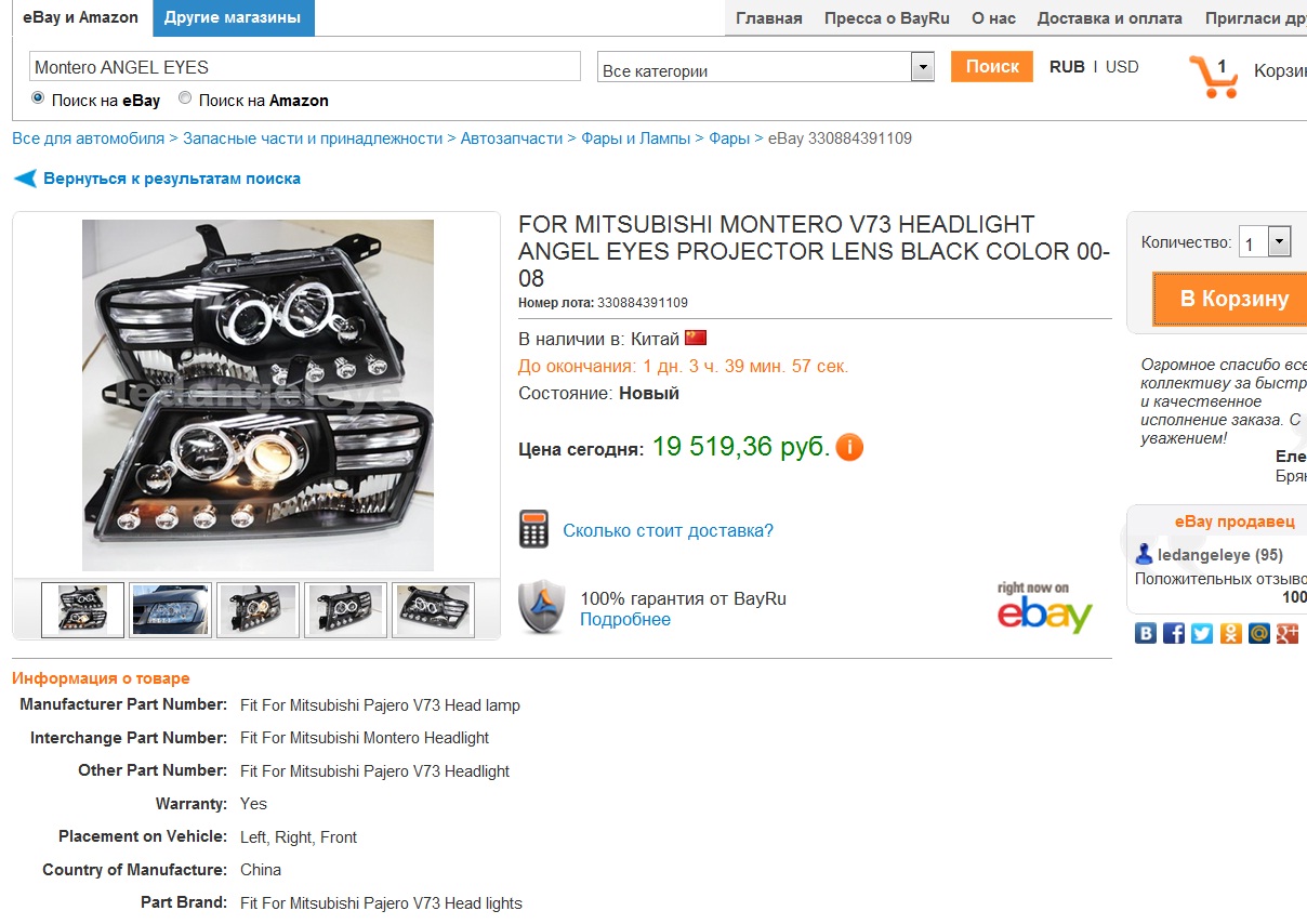 Ценник на Ебай, не ниже 20 т.руб. Я тоже сначало на Ебай смотрел, предложений очень мало. Этот товар там не выгодно брать. Доставка космос. +Наша таможня может превратить фары в куски разбитого пластика. Заваливают посылкы Сообщение отредактировал ret - 25.3.2013, 10:31 -------------------- ¡ʁɔwǝнdǝʚǝdǝu оdоʞɔ