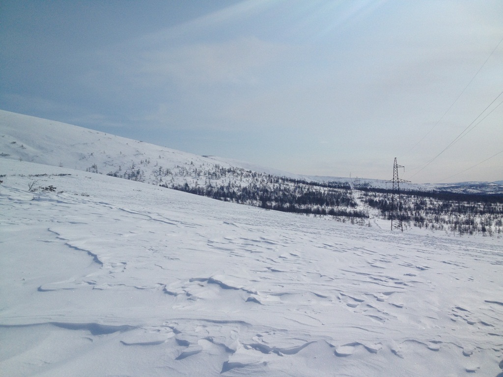 нусс... на 40-м км, влево снега поущи.. сопок понапили.. лапы и хвост отваливаются..