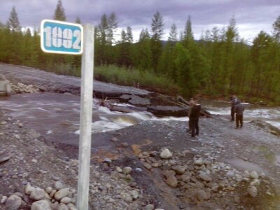 hment=171908:1370389149138.jpg] 71905:1370389043903.jpg] После ремонта на Бурхале двигались без происшествий, на 1002км смытый мост и горная река преградили путь (походу диверсия) Фил переобувшись в правильные тапочки перетащил всех на другой берег, прошли Усть-Неру. Продолжение следует. |