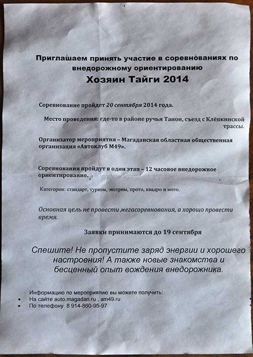 По многочисленным просьбам джиперов - 20.09.2014 проводятся соревнования по внедорожному ориентированию "Хозяин тайги 2014".