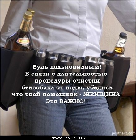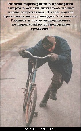 Довольствуюсь полумерами - лью водку в бачок омывателя. Это не полумеры. Это жесткий тролинг ГАИшников! -------------------- «Ад и рай – в небесах», - утверждают ханжи.
