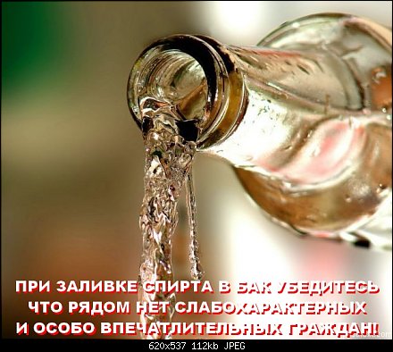 Спирт выводит воду из бака. Ога.