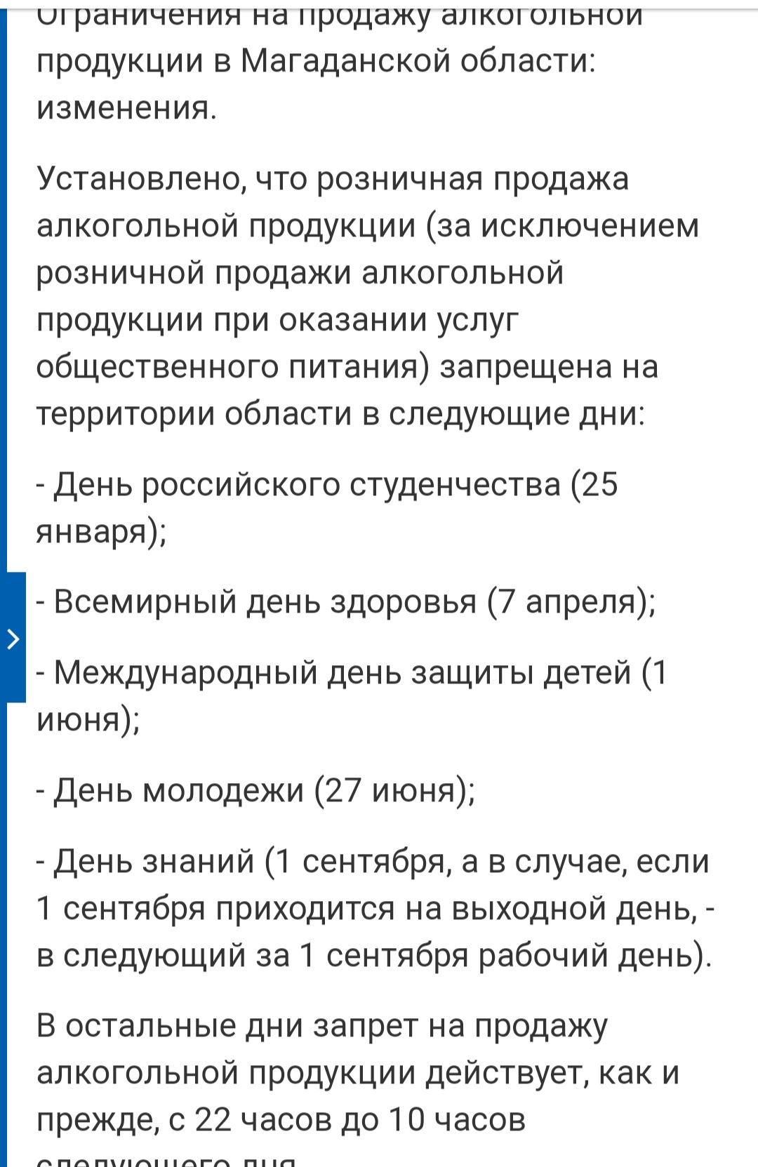 Ребята,а что переживаем,4 дня в году,два уже прошли,вспомните горбачёвские времена, да и таксисты этот промысел забросили что ли? В те времена когда закрыли ночную продажу крепких спиртных напитков, собрались мы с друзьями(давно вместе не собирались,кто на трассе,кто в море) как положено стол накрыли,водочки нормально так взяли(друзья у меня ребята крепкие,и телом и душой,по литру на грудь так профилактика от простуды) посидели,поболтали,всё выпили,пошли в магазин,а там уже полгода как до 23 продают,постояли репу почесали, вспомнили старые времена и пошли к таксистам, через полчаса у нас было всё в нужном количестве.мыслите шире не зацикливайтесь на одном