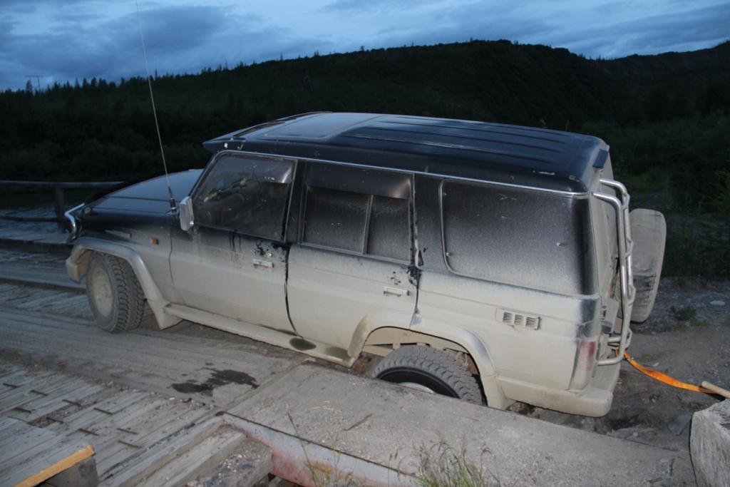 Про дорогу до Палатки писать вообще нет смысла, все и так все знают. Проехали Палатку, Карамкен и идем дальше. Цель нашей поездки на сегодня было озеро Гранд. Находится оно на 183 км трассы не доезжая до п. Атка 20 км. Повернули мы на право (увы в данном случае не налево) и по довольно неплохой дорожке поехали к озеру. Там группа озер небольших и огромное озеро Гранд (верно подмечено название) перед выездом я представлял его значительно меньше. По дороге особых препятствий не встретили, было только одно засадное место, там размыло трубу в которой протекал ручей и проезжать надо через брод, низеньким машинкам там даже в сухую погодку будет не комфортно проезжать, а в дождь ручеек наверное превращается в хорошую речушку способную снести небольшой джипик. Но нам в поездке фартило с дорогой, но не особо фортило с погодой, ручеек был сухой и мы проехали спокойно и без напряжения. И вот мы легко достигли нашей цели, озеро Гранд. Я конечно не поэт, стихами не опишу,но красиво, просто красиво Ну сказано - сделано. Держим курс на Каскадный водопад или ручей Каскадный. Изначально хотел вести журнальчик, но как-то в суете и заботах это дело заглохло и до конца поездки ручку в руку не взял. Заехали в п. Атка, решили заправиться. Цивилизацией на заправках трассы не пахнет. К вам не подойдет заправщик вставить пистолет в бак, пистолеты при наполнении бака не прекращают заправку, а будут лить либо пока внесенный вами залог не закончится, либо пока все топливо из цистерны не перельется на дорогу, так что следить за заправкой надо самому и прекращать ее своевременно. Ну да ладно, заправились и двинулись дальше, летят километры за бортом, проскакиваем перевалы и перевальчики Обгон грузовиков на трассе это конечно отдельная тема, ты его не видишь, он тебя не видит, но каким-то чудом вы на дороге меняетесь местами и продолжаете путь каждый по своим делам. Обгон на трассе это маленькая игра в Русскую рулетку с револьвером, только шансов побольше немного. Солнышко клонится к закату, ну а мы подъезжаем к точке нашего путешествия на сегодня. Каскадный...368-й км Сусуманской трассы. К сожалению, или к счастью, но водки было выпито больше чем можно, а шашлыка съедено больше чем надо и на утро в назначенное время наш экипаж проснуться не смог, а по пробуждении водятел (тобишь я) к управлению транспортным средством был не допущен медкомиссией и наш отдых затянулся. Ночькой пошел дождик, первую половинку дня потихоньку капало, а я после обеденного супчика отдыхал в машине и готовил свою больную голову к дороге. После легкой послеобеденной дремы мое состояние резко улучшилось и я смог продолжить поездку. Мы выдвинулись в сторону п. Ягодное к основной цели нашего путешествия. Прошли крупнейшую реку Магаданской области р. Колыму. После поселка Дебин качество дороги резко ухудшилось. По трассе много ремонтов дороги, где-то спрямляют, где-то просто чинят. Местами имеют место такие конкретные подходы к строительству, что просто удивляешься, - как грунтовка на трассе лучше асфальта в городе? Ну а мы едем, едем, едем в далекие края и вот он знак "ОЗЕРО ДЖЕКА ЛОНДОНА". Нам в этот раз "налево". Поворачиваем налево, проезжаем 50 метров, заезжаем на мосту, проезжаем кирпич и тут крик напарника "СТОЙ!", торможу, а машина уже меня не слышит и катится вперед, БУХ и мы сидим. Глупо, по идиотски, но сидим. 