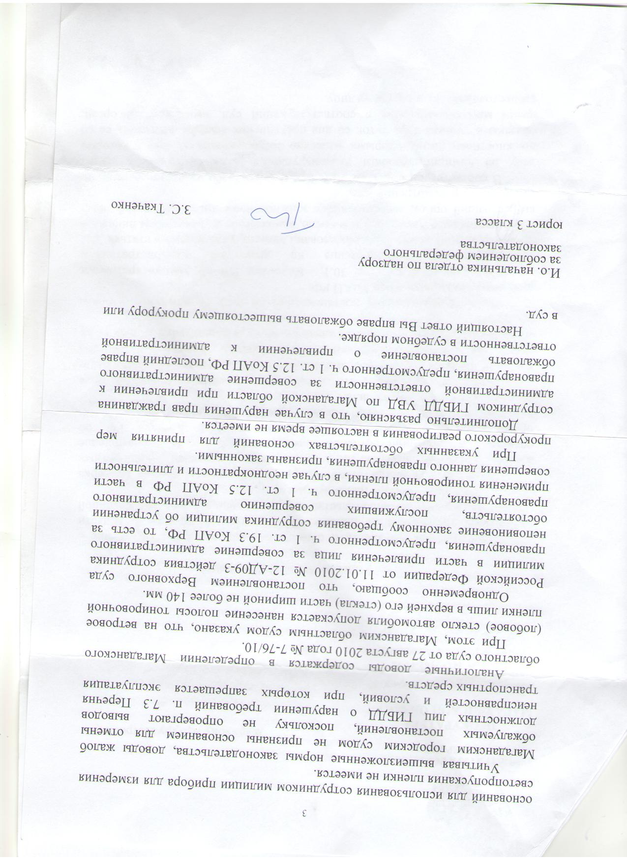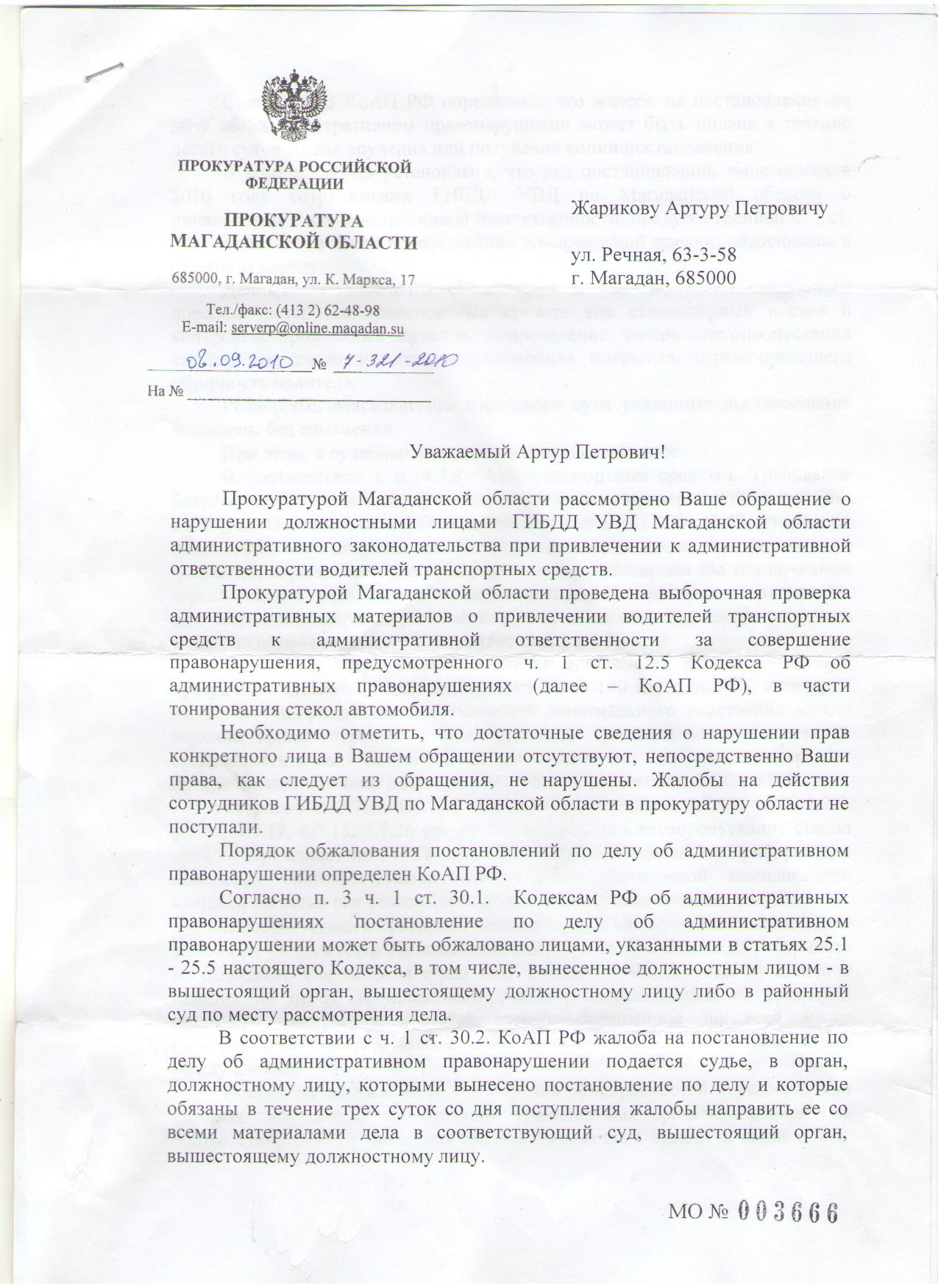 жаль нет сканера.сегодня пришел ответ из областной прокуратуры,они проводили расследование по жалобе в ген.прокуратуру.ничего хорошего не написали,да и не сильно ждал от наших.все размыто,требовать снять тонировку могут,но вы имеете право обжаловать,посадить по 19.3 могут,но вы имеете право обжаловать.либо человек по указке свыше писал,либо он кретин.я так понял,если будете трепыхаться,то вы не виновны,если нет,ну и хорошо,нам меньше головной боли.жаль некогда обжаловать ответ,че то дел неакопилось...