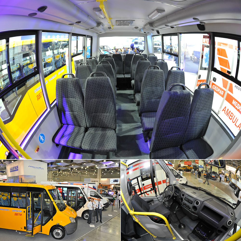 В тот момент, когда «легковая» общественность внимательно рассматривала новинки Франкфурта, «грузовой» автомир следил за другой выставкой — столичным биеннале Comtrans’2013. И хотя наш проект обычно не уделяет внимание грузовикам, мимо этой выставки мы пройти не смогли: здесь Горьковский автозавод презентовал целую россыпь «легковых» новинок! Производство Газели-Next стартовало весной — тогда заводчане презентовали только короткобазный бортовой грузовик. Чуть позднее появилась длиннобазная версия, которая вовсю продаётся, а сейчас завод представил грузовичок со сдвоенной кабиной, маршрутку, автомобиль скорой помощи и даже новое поколения трудяги «газона», который получил кабину от Некста. Новая маршрутная Газель: с ABS и высоким потолком Прежняя маршрутная Газель создавалась фактически от безысходности. Стране понадобились автобусы малой вместимости, и самым простым решением было построить такую технику из обычного фургона: врезать стёкла, установить сиденья... Машина получилась тесной и не самой удобной. В полный рост внутри такого автобуса не встанешь, двери открывают сами пассажиры. Поэтому, когда на рынке массово появились более вместительные фургоны иностранных марок, Газели начали сдавать позиции. На привычные маршрутки пассажирская версия Газели-Next похожа мало. Тех, кого смущает некстовская «высоколобость», успокоим: управляемость автобуса оттачивали на одном из европейских полигонов совместно с европейскими же специалистами, так что излишней склонностью к опрокидыванию 18-местная машина отличаться не будет. Также со временем появится опционная система стабилизации (над этим уже работают газовские инженеры), так что Некст станет ещё безопаснее. Выпуск автобусов ГАЗ не планирует отдавать на откуп частникам, а займётся производством пассажирских машин самостоятельно, на производстве спецтехники. Версия для городских перевозок — только начало. Уже готовы пригородный вариант на 18 посадочных мест, корпоративный, туристический и школьный (на фото — слева) автобусы Нет, газовцы, конечно, пытались создать каркасно-панельный автобус (эта технология подразумевает постройку специального пассажирского кузова на «голом» шасси), но прежнее поколение «полуторки» не подходило для подобных целей — в первую очередь, машине банально не хватало тормозов! Зато новейшая Газель-Next для таких переделок подходит идеально, поскольку конструкция шасси изначально рассчитана на 4200 кг полной массы, а значит, по тормозам появился достаточный «запас». Последние, кстати, оснащены ABS. Чтобы не отвечать на многократно повторяющийся вопрос, как устроена Газель-Next, газовцы привезли на выставку «препарированное шасси»: дескать, смотрите, изучайте, делайте выводы. Жёлтым, кстати, выкрашены стабилизаторы поперечной устойчивости, которые не всегда встретишь на коммерческой технике! Делается пассажирский Некст по технологии «больших автобусов»: на шасси монтируется стальной каркас, на который навешиваются панели из оцинкованной стали (капот и боковины) и пластика (крылья, передняя и задняя панели, крыша). Другие признаки «настоящих автобусов» тоже присутствуют: передняя распашная дверь — с электроприводом, высота салона — внушительные 190 см, над креслами «протянуты» поручни. Самих кресел — 18, плюс один человек может ехать стоя. Впрочем, 