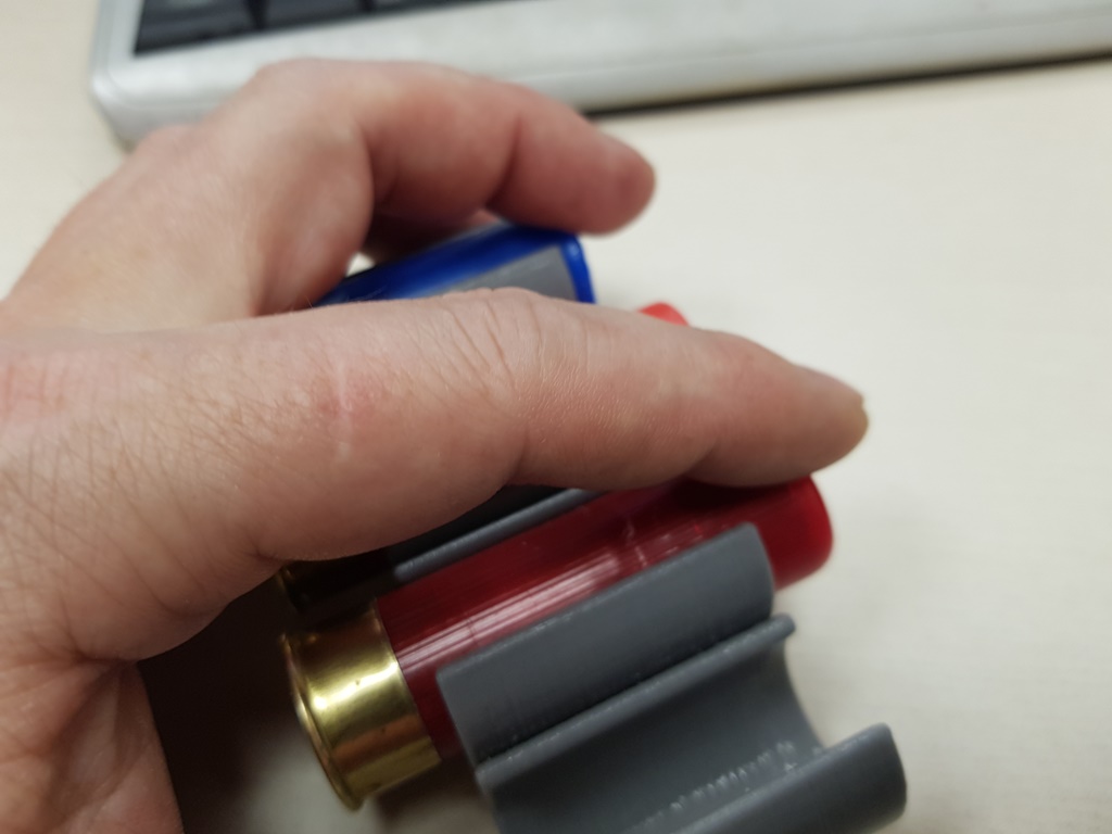 Проверка на кармане проводилась с применением куртки от комплекта рабочей одежды, т.к. ткань там довольно тонкая и достаточно гладкая (скользкая)...Фото на кармане есть выше...При тряске в вертикальном положении всё удерживается уверенно...Только когда я перевернул куртку горловиной кармана вниз и начал активно и старательно делай два делай три Ну и для двадцатки себе сделал...несколько иная задумка - на поясной ремень и просто, как небольшой патронташ... Завтра планирую сесть за модель финальной матрицы, чтоб патронам дульце немного на конус сводить, чтоб в п/а или помпе утыканий избежать при подаче патрона...Такую вот потеху себе придумал, как в пневматике наскучило... -------------------- |