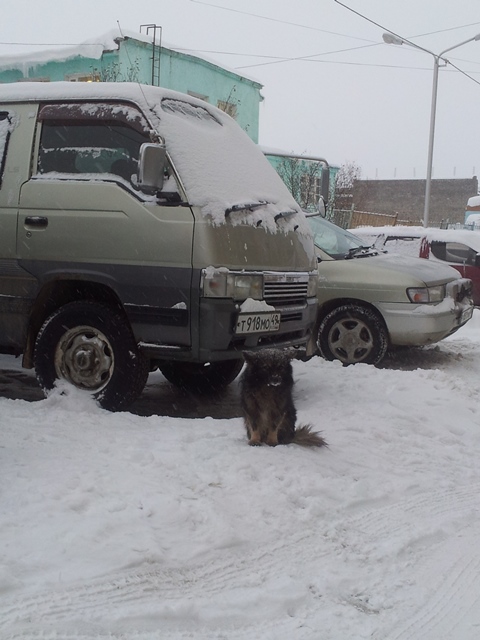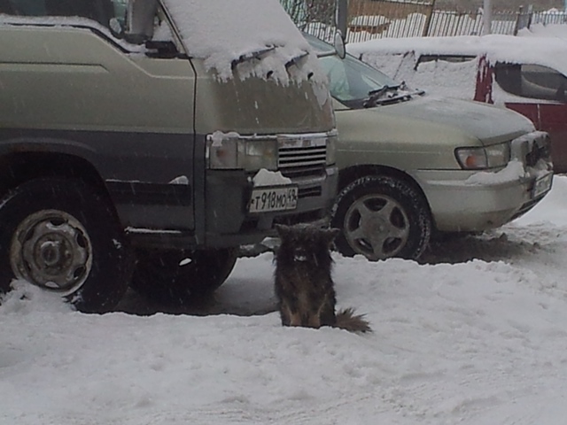 Эта собачка уже вторую зиму живет на улице. Человек который ездит на Хайсе не является ее хозяином,просто ее подкармливает. Прошлой зимой мы ее пускали в подъезд жить в 8, но она постоянно кидалась на ноги и детям и взрослым пытаясь укусить, лай от нее был и днем и ночью, спать не давала, вот ее и высилили на улицу.Конечно собачку жалко, но через чур уж она вредная.