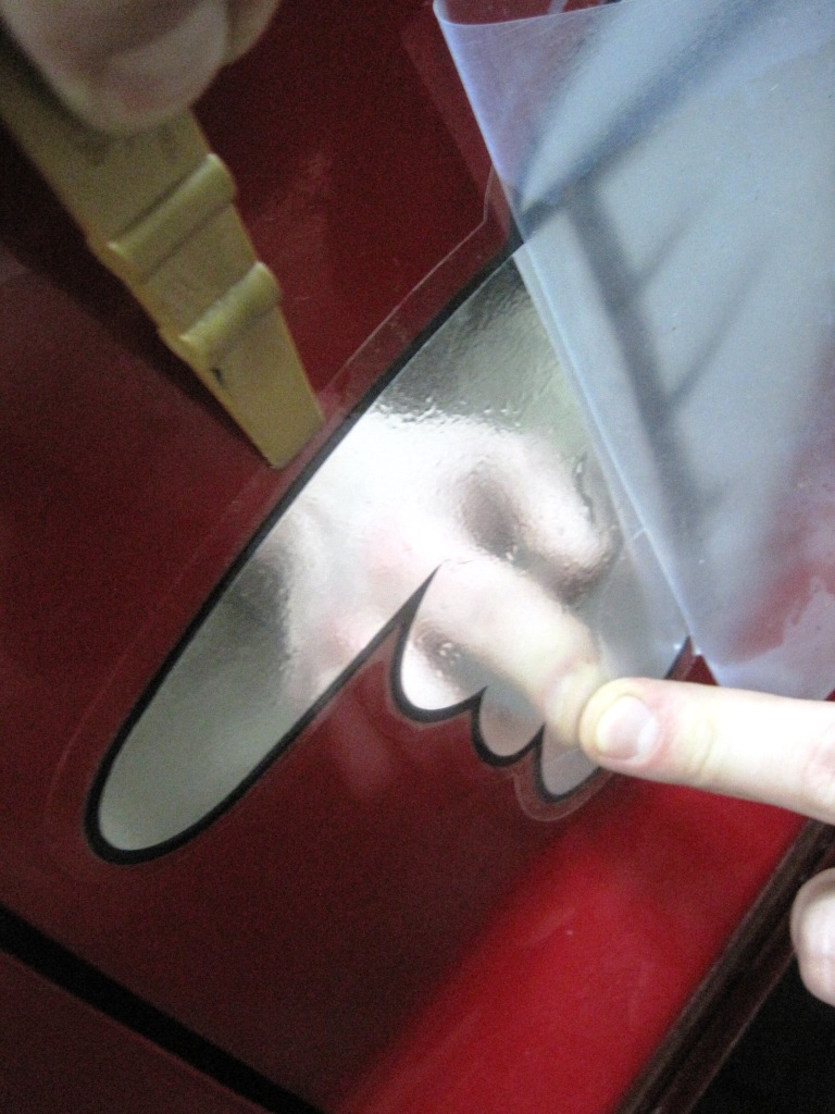 Каков принцип нанесения прозрачного лака вокруг по контуру?Возможно ли произвести эту операцию на уже наклеенные картинки и не бывшие в эксплуатации?