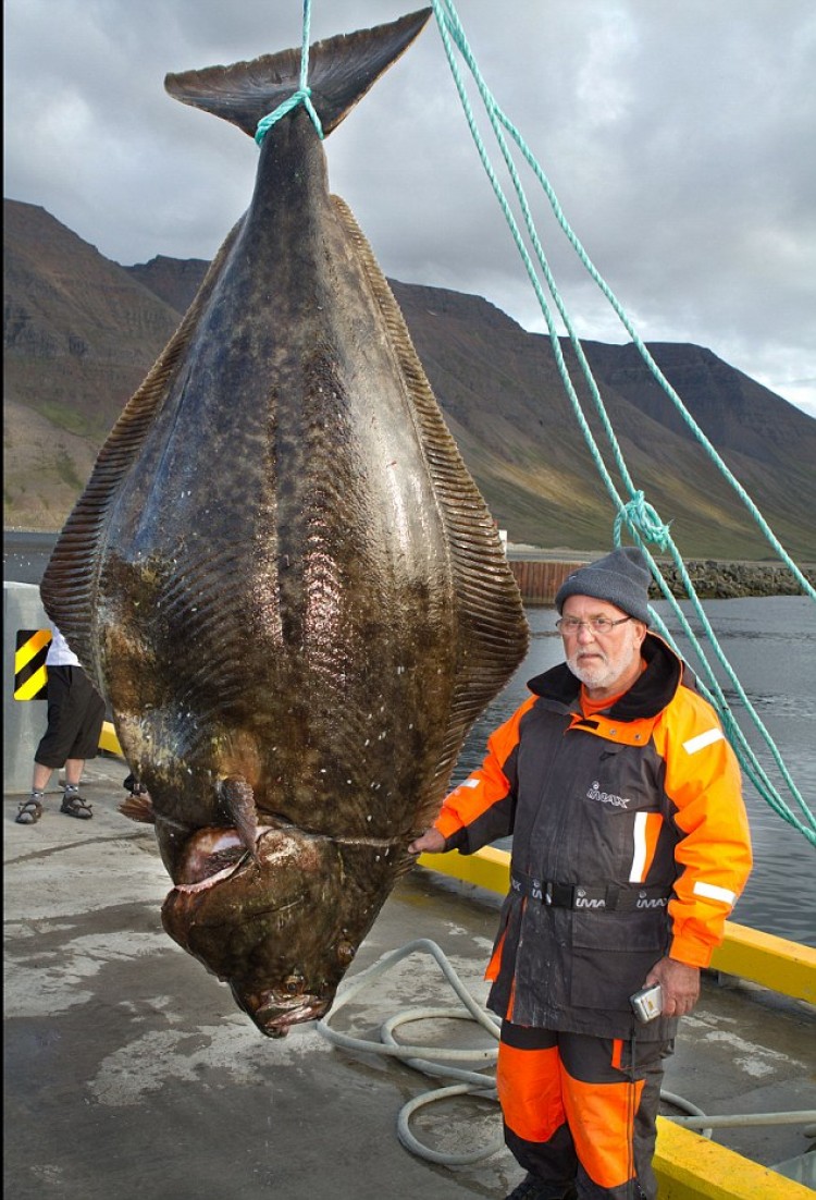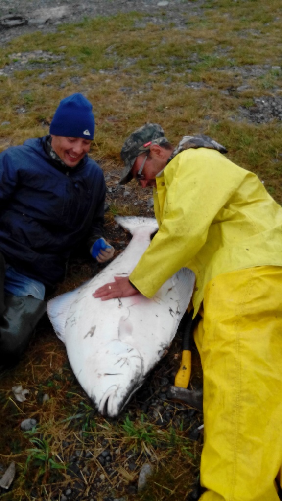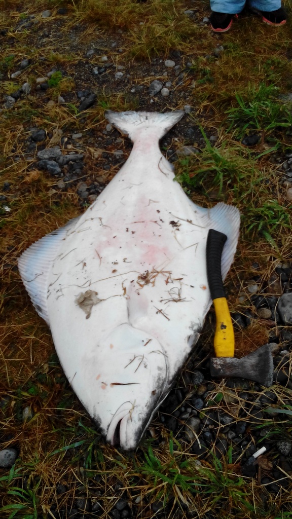 Были на выходных на Солёном, поймали палтуса, 1,25 метра, в краболовку-парашют.