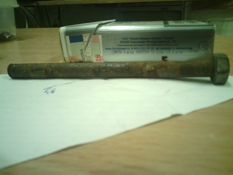 Вопрос? можно ли взять заместо сломанного нарезать в отверстии резьбу и вкрутить болт покороче(без последствий каких либо) или же он выполняет ещё какую то функцию кроме крепления крышки термостата. для наглядности сфотал сам болт в сравнении с пачкой сигарет, он длинной примерно 12 см. и ещё вопрос если на морозе нарезать резьбу, не лопнет ли метал при нарезке? |