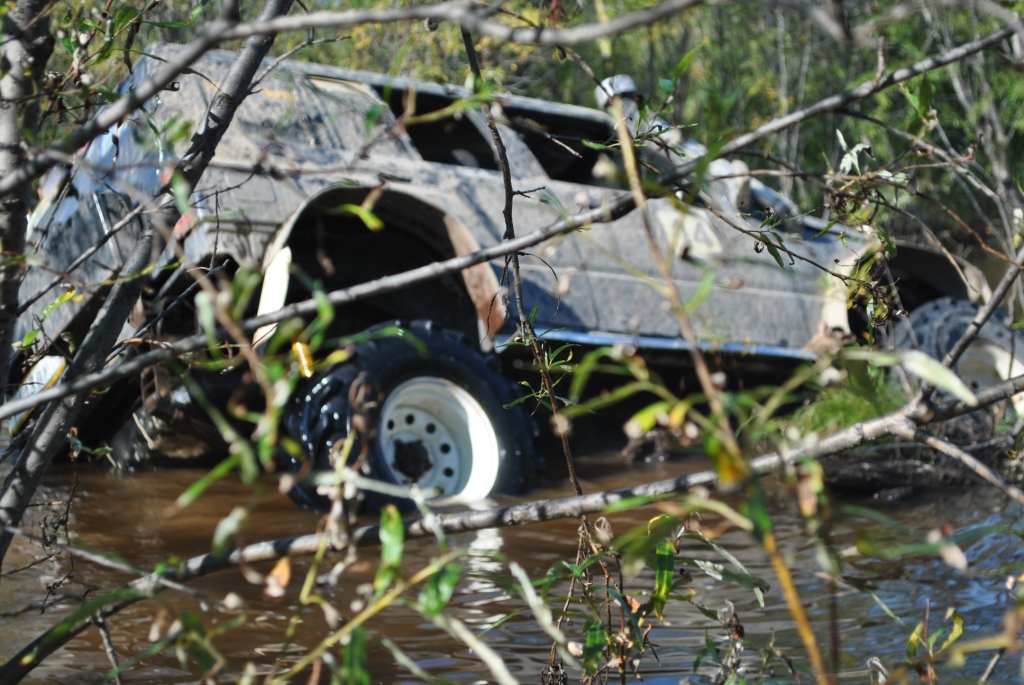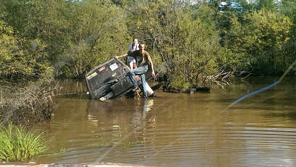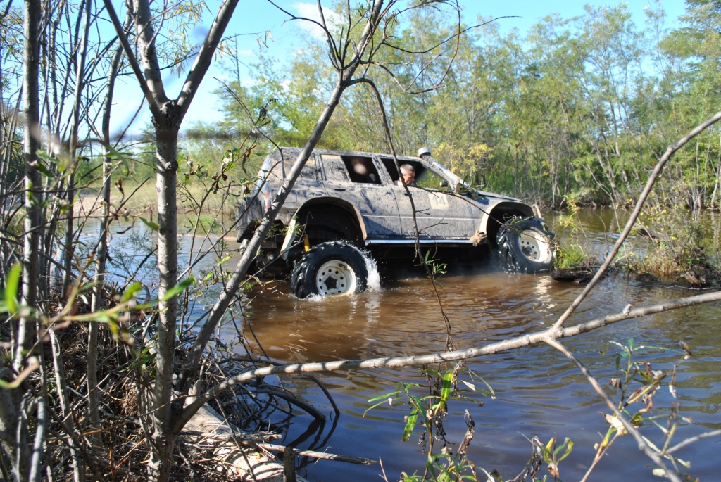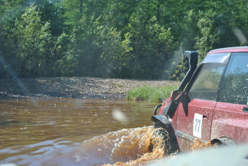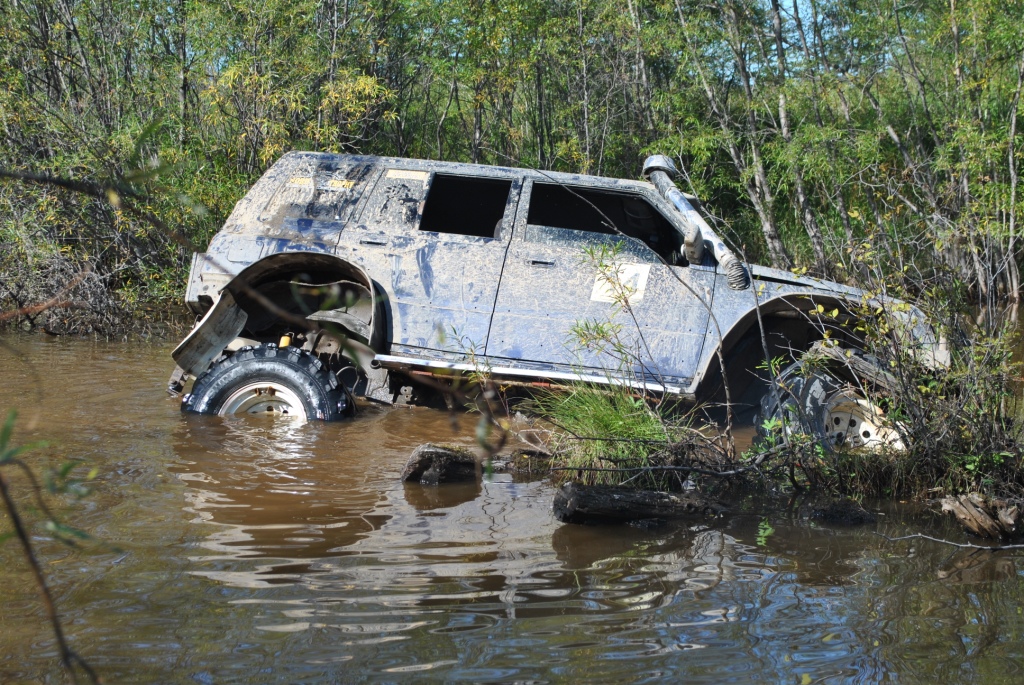 Главная цель сегодняшней вылазки было найти место под предполагаемый лагерь для соревнований, чтоб и связь и пространство и водоем поближе. Присмотрели несколько вариантов и выбрали лучший. Кто машину чинить Кто предаваться ничегонеделанью А я собаку "мучила" Миша с его штурманом Иваном решили что найти лагерь мало их зовет дорога и резво поскакали в неизвестном направлении. Вернулись довольные и воды привезли.....прям в салоне Обсохли, подремантировались, а тут и Faust c _VIKTORY_ мимо проезжали. Тут mik и говорит им "птичка полетели со мной, я знаю где много вкусного", а им этого только и надо. Мне любезно предложили место фотокорра. Но прошу сразу извенить меня за качество снимков, но фотографировать одной рукой (второй я держалась за ручку в потолке эскудика mik'а, а то в открытое окно бы улетела) проблематично. Мы успешно форсировали несколько "луж", если эти водоемы так можно назвать: А вот на последнем мини море случилась досадное недоразумение, машина попала в плен в самом центре водоема, зацепившись за корягу, и как-то неожиданно начала заваливаться на бок, на мой бок, а плавать я не умею. Самый запоминающийся момент был когда я поняла что уже сижу не на кресле, а в воде, выхлоп повалил в салон, поэтому глаза немного резало и в этот момент я фокусирую взгляд на том что через моё открытое окно вода наглым образом просто захватывает пространство, и в этот момент я подумала не о том что плавать не умею, что уже вся мокрая, что надо выбираться, а "№";%:? фотоаппарат, его нельзя утопить" мне было искренне его жаль, новый-то мне никто не купит, так что его я берегла. Вид из окна, до того как начали заваливаться В какой момент Миша скомандовал "Мы застряли" я не помню, помню открытую водительскую дверь и я быстро в неё прошмыгнула, стали озираться по сторонам и оценивать ситуацию Второй экипаж успел уйти дальше, от этого становилось грустно, я не планировала сегодня утонуть в попытки добраться до берега. Но нас конечно же не бросили, вернулись и кажется немножко ненавидели. Вот в таком положении нас застали: Меня и Ивана эвакуировали из машины, ибо толку от нас мало, а лишние переживания не к чему. Поэтому свои эмоции пусть "спасатели" дальше пишут, а с меня фото: Сообщение отредактировал Валькирия - 25.8.2014, 15:36 -------------------- 8-91Ч-0З1-5б-98