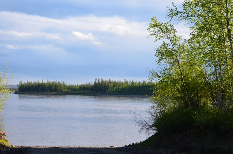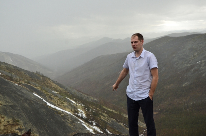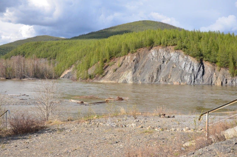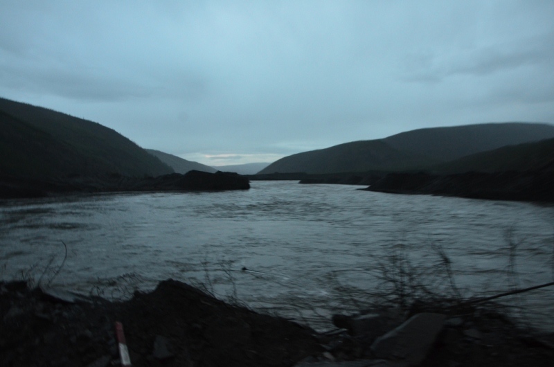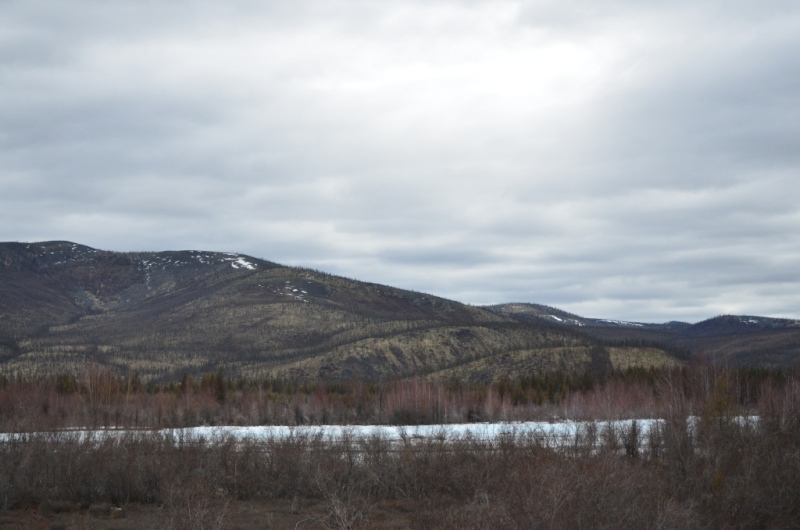 01 июня 2014 года. Встали в 9 часов утра. Завтрак, продукты в дорогу по мелочам, 60 л топлива на багажнике (3 канистры по 20 л). Заранее приготовили спальник в машине, заставили его коробками с некоторыми вещами и маслами для автомобиля. Кроме того с собой был комплект ЗИПа для переднего моста. Выехали из города в 11 часов. Что ж, До свидания, Магадан. На выезде из города сделали небольшую фотосессию у стеллы. На Соколе (56 км) заехали в аэропорт, чтобы купить магнитиков. Погода была пасмурной с небольшими прояснениями. Для путешествия это даже преимущество, т.к. вероятность наличия пыли на дороге была почти нулевой. Асфальт от Сокола до п. Палатки весь в трещинах, очень большое количество «нырков» из-за провалов дороги. Автомобиль тяжелый, поэтому довольно легко проходил эти неудобства дороги. Среднюю скорость старались поддерживать 80 км/ч, максимальную 100 км/ч. Проехали п. Палатка, пост Таможни. Еще заранее решили идти по Теньке, т.к. сокращаем 100 км, хоть и дорога сложнее. Здесь больше живописных мест, 2 крупных строящихся предприятия на месторождениях «Павлик» и «Наталкинское». После поста свернули налево на Тенькинскую трассу. Гравийная дорога в удовлетворительном состоянии. Все сопки в снегу. На перевале Гусакова сделали 10 минутный привал, не изменив сложившейся традиции. Дело в том, что при любой поездке на Теньку или просто по «золотому кольцу» всегда останавливаемся поглазеть на окрестные красоты нашего края. Долгое время шли дожди, поэтому все реки и ручьи были мутные. Пейзажи в районе Магадана серые, только за счет кедрового стланика виднелась на сопках зелень. В Усть-Омчуге остановились в кафе на небольшой перекус: взяли плов, пи-рожки с капустой, чай. Вышло что-то в районе 600 рублей. Там же заправили автомобиль до полного. Средний расход выходил в район 13 л/100 км, что для нас являлось приемлемым. Климат здесь значительно теплее магаданского (в летний период), на что оказывает влияние удаленность от Охотского моря, - здесь прослеживается зелень в виде распускающейся хвои на лиственницах. Дорога до Омчака загружена в воскресный день была несильно: несколько раз встречались фуры «Полюс Логистики» и других перевозчиков, реже, чем в будние дни. Где-то в 17 часов проехали пос. Гастелло. Здесь полным ходом идет строительство золотоизвлекательной фабрики на базе месторождения «Павлик». Через км 12 въехали в пос. Омчак. Здесь более оживленно – идет строительство крупнейшей золотоизвлекательной фабрики на базе месторождения «Наталкинское». В поселке находится вахтовый поселок ОАО «РиМ» (рудник имени Матросова, принадлежащий ЗАО «Полюс»), построенный в традиционном стиле. Здесь мы также заправились до полного бака, т.к. следующая заправка должна быть уже в Якутии. После пос. Омчак качество дороги изменилось, т.к. частота движения здесь в разы меньше. Только вот хуже ли она стала – сказать спорно. Ширина дорожного полотна стала меньше, одна накатанная колея, но меньше ям. Так не спеша въехали на Кулинский перевал, находящийся между одноименным поселком и пос. Омчак. У пос. Кулу всегда был свой микроклимат, отличающийся жарким летом. И сейчас тут была яркая зелень недавно распустившихся лиственниц. Температура воздуха в пределах 14-17 оС. Спустились к реке и остановились на короткую фото-сессию. Река в это время была полна воды, мутной от проливных дожде