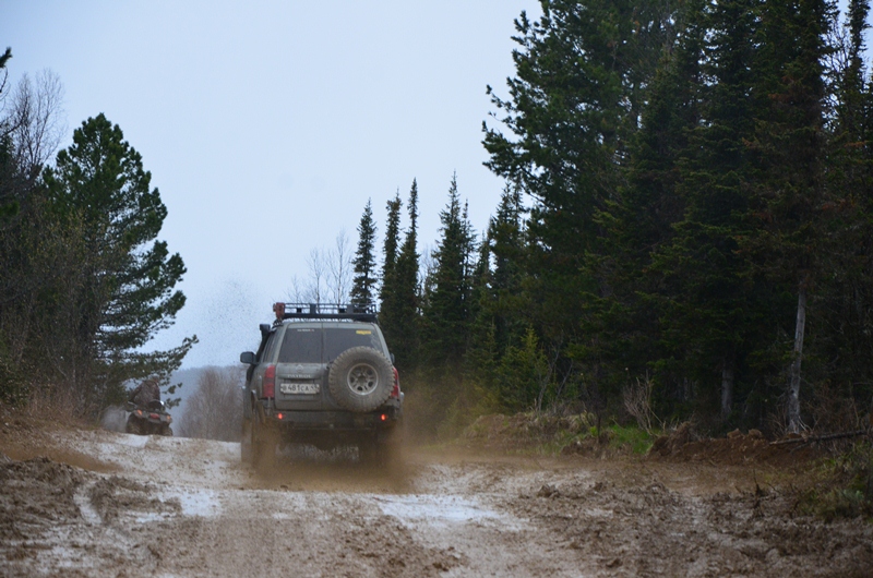 Утром после завтрака поехали на шиномонтажку, чтобы отбалансировать передние колеса (зимой одно колесо разувалось, поэтому ближе к асфальту захотелось провести балансировку). В одной шиномонтажке необходимо самому домкратить и снимать колеса, поэтому сразу отказался. Поехали в следующую. Сразу же совместил процедуру поверхностного ТО передней подвески. Ступичные подшипники затянуты в норме. На левом переднем амортизаторе развалились нижние втулки (резинки). Найти в городе на Nissan Patrol не смог, попались только на Land Cruiser, но и то только Febest. За неимением оригинала взял данные втулки и установил (до Красноярска, где решил поменять на оригинал). Втулки чуть уже наших. Затем заправились и поехали смотреть парк горной техники. На прощание сфотографировались на смотровой площадке и двинулись в сторону Большого Невера. Выехали из города в 14 часов дня. Проехав около 30-50 км, остановились на ручье, чтобы помыть боковые окна и зеркала, а также набрать воды в бочок омывателя. Въехали в Амурскую область. Ремонт трассы ведется менее интенсивно. Дорога местами грейдерована, местами нет. Не доезжая 80 км до Неверской развязки, обошли магаданский экипаж на Хайсе. Остановились поговорить. Молодая семейная пара шла в Новосибирск. Тут же обнаружили отсутствие гайки и шайбы на нижнем креплении правого заднего амортизатора. В наличии гайку не нашли, да и амортизатор с крепления не сходил. Поэтому пошли так дальше. На Неверской развязке поехали в пос. Большой Невер, чтобы найти необходимую гайку и шайбу. Время было уже около 19 часов вечера. Объехали поселок, ничего не нашли, вернулись на шиномонтажку на въезде в поселок, где работали люди (вели демонтаж оборудования). Хозяин из присутствующих людей сказал уйти на Хабаровск от развязки км 3, где будет АЗС, напротив автомагазин, мотель и автосервис, который он содержал. Сам обещал приехать через минут 10-15. Так и сделали. Дождались хозяина автосервиса, нашли необходимую гайку и шайбу, рас-сверлили ее до диаметра 12 мм, там же я ее установил. Спасибо доброму человеку. Тут же обнаружили, что спускает заднее правое колесо. Как выяснилось, пробили его где-то по трассе «Лена» перед развязкой. Шиномонтажка была в 50 метрах, поэтому сразу заехали на нее. Пока вели ремонт колеса, осмотрел заднюю подвеску. Из неисправностей – открутился нижний болт крепления к мосту хомута, удерживающего задний стабилизатор. Сам хомут погнуло стабилизатором. Открутил второй болт хомута, выпрямил его, подобрал в шиномонтажке болт и прикрутил стабилизатор на место. Все остальное было в норме. Проехав около 10 км, остановились в зоне места остановки для замены воз-душного фильтра, т.к. всю часть гравийного маршрута мы уже прошли. Фильтр был на полкило тяжелее нового, в корпусе валялись ветки деревьев (от зимних поездок). Далее мы пошли со скоростью 100-110 км/ч. Асфальт довольно хороший, но очень много «люлек», которые обозначены четко знаками. Нам с нашими более 3 тоннами они не представляли особого труда при прохождении, поэтому шли, не останавливаясь, до позднего вечера. Прошли в этот день от Неверской развязки по-рядка 450 км. Спать остановились в стороне от дороги в машине. -------------------- Каждый сам выбирает свой путь