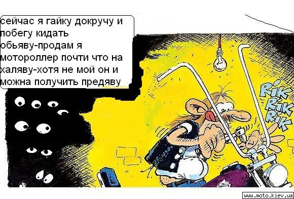 С год назад видел на каком-то форуме кто-то задал вопрос: "А что будет если бензинку солярой заправить?", его отговорили, но тем не менее он всё-таки заправил, над ним там долго и весело стебались. Получилось ещё веселее рассказа Саньки про отсечку... -------------------- Переходи на темную сторону!