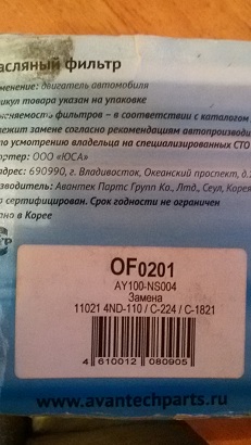 Фото не загружается почему-то с телефона\попозже с комп-ра попробую\, а пока напишу какие цифры там: " OF 0201 AY100-NS004 замена 11021 4ND-110\С-224\С-1821 ". Спасибо! — `Саня`