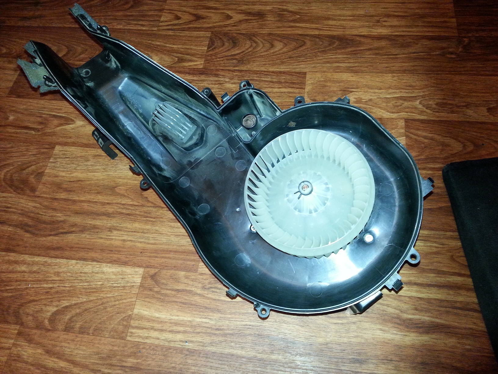 Поломался двигатель вентилятора печки. причина поломки выгорел коллектор, в магазине на заказ б\у стоит 8000, вышел из положения купил новый эл.двигатель от паджеро, честно говоря пришлось помучиться отрезал от родного корпуса посадочное место на эл.движок, с лицевой стороны срезал ребра жесткости, и в монтировал новый движок и вот что получилось.