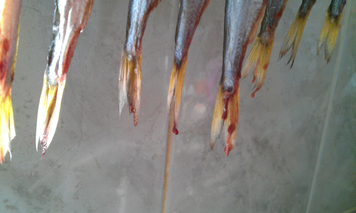 Всё прогрессивное человечество вешает на завяливание рыбу за хвост