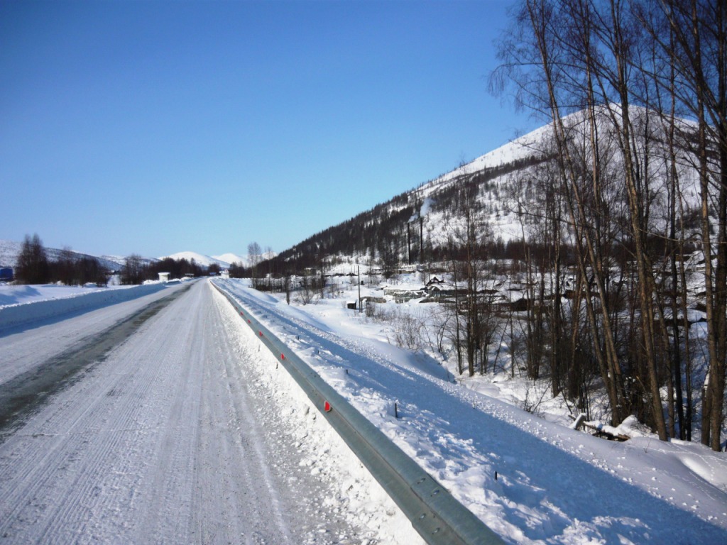 Alex_gunn, трасса через поселок проходит. Кпп наверно на новый рудник Трасса проходит через Омчак и Молодёжный. На Молодёжном, метрах в 100 от заправки, стоит КПП и от него дорога идёт собственно на посёлок имени Матросова. Не знаю, насколько новый там рудник, но здание управления и гостиница, по ходу ещё Хрущёва застали, если не Сталина. |