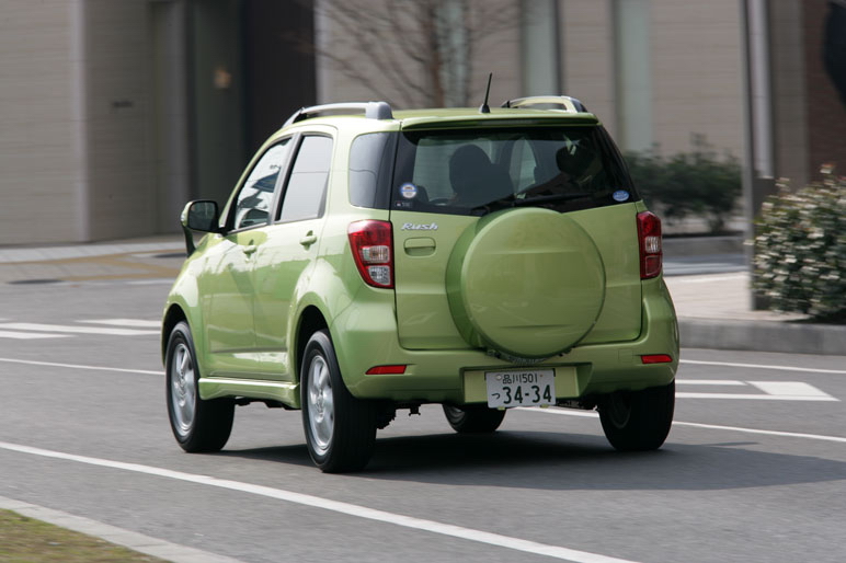 Источник: CARVIEW.CO.JP Перевод: Drom.ru Автор: Suzuki Mahito Фото: Mine Masahiro при перепечатке ссылка на источники текста и перевода обязательна! На рынке появился новый автомобиль «для активного отдыха» SUV класса «компакт», который является совместной разработкой компаний Toyota и Daihatsu. В зависимости от того, под чьей маркой выпускается эта модель, она может называться либо Toyota Rush, либо Daihatsu Be-Go. Что же получается, те модели класса SUV–компакт, которые существую уже давно, с каждым новым поколением увеличивают свои габариты, а вместо них на рынке появляются новые машины, которые опять начинают с малого размера, но зато оказываются более удобными при езде по городу. Тем более что высокая посадка водителя и, следовательно, угол, под которым водитель видит дорогу к этому, как говорится, располагает. Наш журналист совершил испытательную поездку на новом автомобиле этого модельного ряда. Заднеприводная платформа оказалась к месту. В последнее время наблюдается интересная закономерность. Предположим, что где-то проводится презентация очередной модели совместной разработки компаний Toyota и Daihatsu. Таких модельных рядов, как известно, уже несколько: Toyota Passo / Daihatsu Boon, Toyota bB, теперь вот Rush/Be-Go. Естественно, что прибывшие на место журналисты начинают обмениваться визитками с инженерами, входящими в конструкторскую группу. Так вот, если затем посчитать, то визиток от компании Daihatsu оказывается больше, чем от компании Toyota. Это довольно точно характеризует сложившуюся в последнее время тенденцию в отношениях между этими двумя компаниями в части, касающейся разработки машин группы «компакт». Иными словами, компании Toyota уделяет этой области все меньше и меньше внимания, перепоручив это специалистам Daihatsu. Новая модель пришла на смену снятому с производства модельному ряду Daihatsu Terios / Toyota Cami и, предположительно, будет продаваться более чем в ста странах мира. То, что новая машина Rush/Be-Go обладает компактным кузовом, видно невооруженным взглядом. Специалисты могут легко вспомнить, что с точно такого же кузова начинали модели Toyota RAV4 и Suzuki Escudo, которые с течением времени значительно увеличили свои габариты, чтобы заполнить оказавшуюся свободной соответствующую нишу на автомобильном рынке. И тогда на смену повзрослевшему товарищу выходит автомобиль модели Rush/Be-Go, которые по габаритам – копия машины RAV4 первого поколения. Можно сколь угодно долго спорить, какой кузов для машины класса SUV самый оптимальный, но факт остается фактом: если предполагается передвигаться главным образом по городским дорогам, то кузов, нынешней модели Rush/Bego для этого вполне подходит. По крайней мере, хорошо то, что длина автомобиля SUV городского «исполнения» не превышает 4-х метров. Понято, что небольшие габариты машины довольно существенно ограничивают свободу «творчества» для дизайнеров. И, тем не менее, небольшой по размеру автомобиль получился очень стильным. Достаточно только взглянуть на прямоугольное стекло на двери багажника и задние фонари, которые почти в точности следуют линии боковой кромки этого стекла. К числу особенностей нового автомобиля можно отнести жесткий чехол для хранения запасного колеса, который укреплен на двери багажника, и обводы крыльев, которые подчеркивают энергичный характер нового автомобиля. Одним словом, внешний вид новой модели Rush/Bego, несмотря на его небольшо