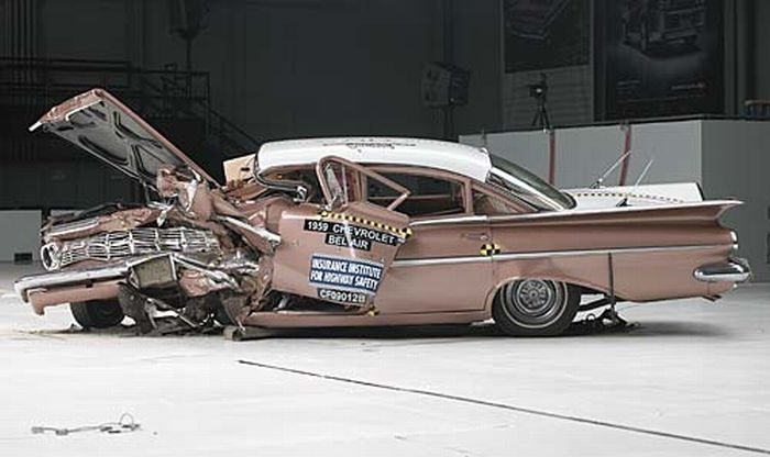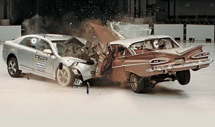Вот ещё фотки краш-теста автомобилей Шевроле 1960 и 2009 года.