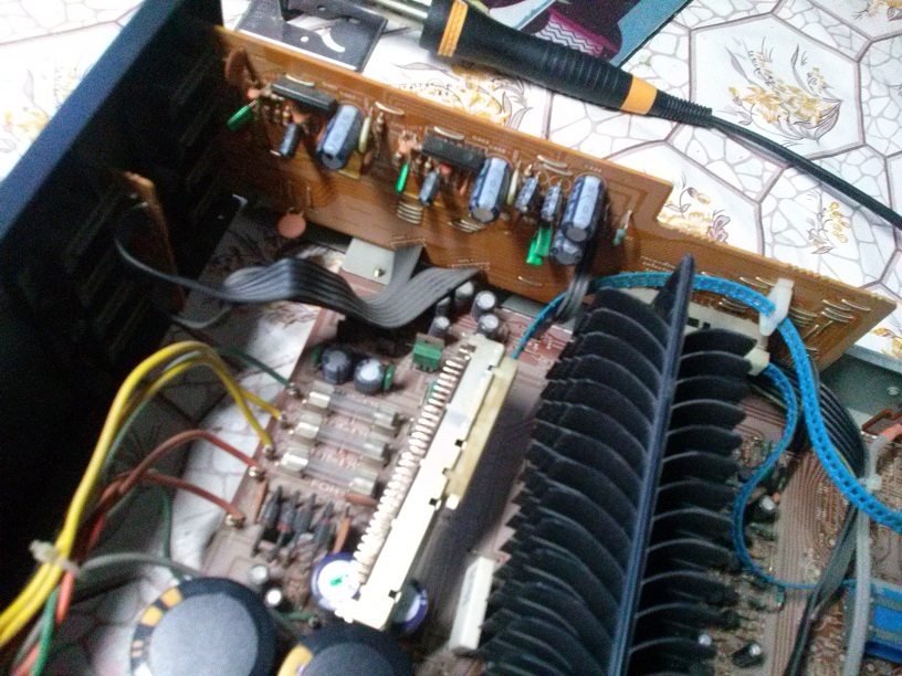 Marantz pm 750 попал на разделочный столик. В деревянном плаще. Выходные транзисторы давно такие не встречались,это уже пропаял. Ну собственно если опустить профилактику электрической части основные работы конечно с переключателями-селекторами. Вот ради интереса посмотрите пшикнул 3м очистителем на контакты-как было алеппо,так и осталось. Переменные резисторы и кнопки тоже. Из конкретно сдохшего конденсаторы по питанию где то по 6500 мкф были вместо 10000,esr тоже не фонтан,ну да грех огорчаться-ему лет 35