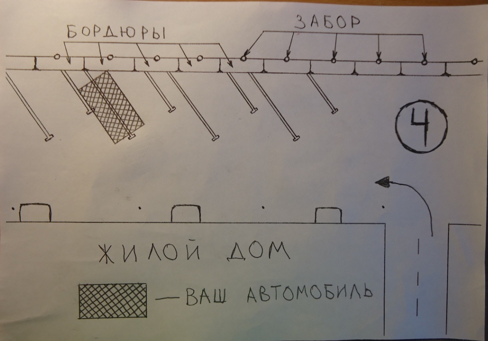 Я наверно какой-то тупой, но если я приеду во двор и увижу такую разметку, то ничего не пойму. Что за маленькие линии, парковку для великов отделять? Я поставлю машину по варианту 2. То, что бордюр и забор обозначены имеет значение?