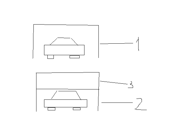а про ворота так. 1- обычный вариант:самый теплый воздух, поднявшийся кверху, выходит в щель мжду машиной и верхним створом ворот, 2- вариант со шторой (3)