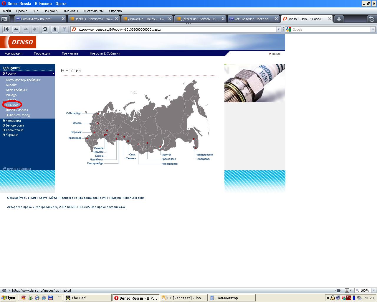 а если тебе интересно свечи.. то посмотри.. это с официального сайта DENSO там перечислены поставщики свечей в Россию, кружком я обвел кто поставляет нам.. у них же закупают эти свечи и все остальные, кто ими торгует в Магадане на 99 процентов уверен.. Цитата(Лёлик @ 1.11.2009, 20:24) ссылка доступна только зарегистрированным