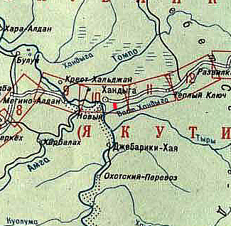 Но выходит и местных жителей они тоже обманывают, те говорят в один голос, что дорога до Хабаровска. Может это прожекты такие? Дорога-то получается местного значения. А рабочим из Джебарики-Хая всё равно придётся проделывать весь путь: "Что нужно сделать якутскому шахтеру для такой же поездки? Рассказываю — на моторной лодке доехать до Хандыги. А это 50 километров. Затем на машине добраться до парома через реку Алдан. Переправиться через водную преграду. После этого часов десять трястись в автобусе или на такси до Нижнего Бестяха. Там опять же на пароме пересечь Лену. После этого доехать до Якутска и только там сесть на самолет." Только я не понимаю зачем ехать на моторке до Хандыги, а потом на машине до парома, разве нельзя сразу на моторке до парома добраться или до Якутска На фото участок новой дороги красным показан (расположение приблизительное). И участок строящейся дороги до реки Восточная Хандыга. Сообщение отредактировал gesel - 31.10.2009, 19:23 -------------------- Имеющий глаза - увидит, имеющий уши - услышит, имеющий мозги - поймёт...