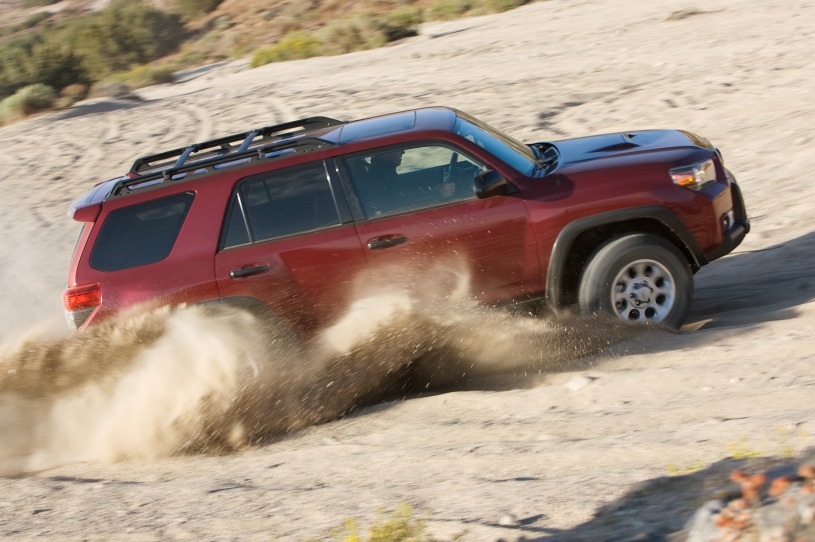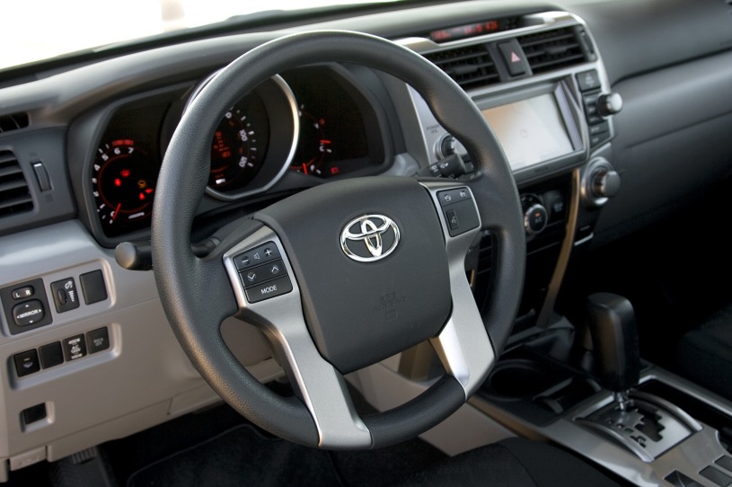 Взобраться по почти вертикальной, покрытой грязью тропе на новом Toyota 4Runner Trail Grade кажется не такой уж сложной задачей, по крайней мере, до тех пор, пока мы не добираемся до гребня холма. На самом деле, эта тропа слишком отвесная, чтобы подниматься по ней пешком: переднее левое колесо начинает терять сцепление, и перед машины начинает стаскивать в сторону, прямо к обрыву, окружающему эту тропу с обеих сторон. Остановив SUV на прямо на склоне (и сделав несколько глубоких вдохов), мы нажимаем на кнопку Crawl Control, выбрав самый агрессивный режим, покрепче хватаемся за руль и полностью убираем ногу с педали тормоза. В этом режиме компьютер сам регулирует степень открытия дроссельной заслонки и сцепление каждого колеса с поверхностью, обеспечивая максимальное сцепление при подъеме на невысокой контролируемой скорости, позволяя водителю полностью сконцентрироваться на рулевом управлении (в данном случае, держать машину подальше от края обрыва). Несколько мгновений спустя мы успешно преодолеваем этот непростой подъем. Кое-что для каждого Если вы когда-нибудь застревали посреди крутого подъема, то технология помощи при подъеме Crawl-Control Technology, впервые представленная в модели Toyota Land Cruiser 200 и устанавливаемая также на Lexus LX570, придется вам по душе. Более подходящего названия для этой системы, чем «Благословенная кнопка», вы вряд ли найдете. Но является ли такая специфическая внедорожная технология жизненно необходимой для среднеразмерного SUV в условиях современного автомобильного рынка? Возможно, и не является, особенно с учетом того, что сейчас немногие занимаются настоящим офф-роудом. Но если вы спросите специалистов Toyota, они вам ответят иначе. Расс Кобл, менеджер по разработке продукции для грузовиков и SUV, говорит, что все очень просто: «Наша стратегия на самом деле элементарна. Мы хотим сделать что-то для всех, вне зависимости от того, где они живут и в чем нуждаются». На рынке среднеразмерных автомобилей Toyota представлена кроссовером Highlander (ранее продавался в Японии как Toyota Kluger) и SUV 4Runner (ранее продавался в Японии как Toyota Hilux Surf), тогда как другие производители для данного сегмента выпускают лишь одну модель. Такой перевес позволил Акио Нишимура, главному инженеру 4Runner, не только начать с чистого листа, но и учитывать историю модели, о чем производители прочих среднразмерных SUV преспокойно забыли в поисках наиболее компромиссного решения. И если кое-какие черты экстерьера выглядят знакомо (капот, передняя и задняя оптика, мускулистые передние и задние арки), то это потому, что Нишимура также возглавлял разработки Toyota FJ Cruiser. Вообще, участвуя именно в этом проекте, он первым решил, что платформа FJ Cruiser, на базе которой собирается также Toyota Land Cruiser и версия для внутреннего японского рынка Toyota Land Cruiser Prado, ляжет в основу 4Runner следующего поколения. Влияние FJ Cruiser Несмотря на то, что колесная база Toyota 4Runner по-прежнему составляет 2 789 мм, а сам автомобиль стал выше, длиннее и шире всего на пару сантиметров, благодаря новой платформе 4Runner внутри стал намного просторнее, в основном из-за опустившегося пола. Наиболее очевидно это для водителя и пассажира на переднем сидении, потому как теперь у сидящих там не создается ощущения, будто они находятся в кабине компактного пикапа (которым 4Runner когда-то был). Да и ноги теперь можно полностью вытянуть даже на переднем с