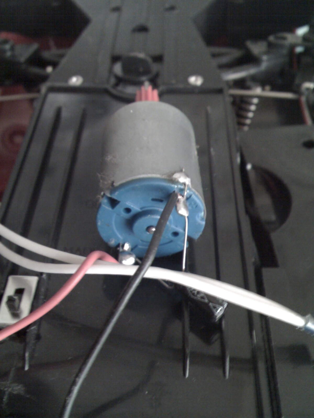 Года полтора назад, купили малому радиоуправляемый гоночный болид. Первые заезды показали что штатный акумулятор, после полной зарядки, может таскать эту махину не более 7-10 минут. Времени наиграться ребенку конечно же не хватало, но зато она все же ездила! Со веременем машина была заброшена на верхнюю полку за не продолжительное время ее работы, антена от пульта где-то потерялась, акумулятор с зарядником куда-то делся.... "Не заслуженная смерть автомобиля!" =) С тех пор прошел год. Как-то мне досталось два акумулятора емкостью 1100 mAh от носимой радиостанции, вот и возникла мысль какнить приспособить их к Болиду, что и было (хоть и не в скором времени) сделано. Акумуляторы были вставлены внутря машины, сделан переключатель для их независимого включения и зарядки, ввиду того что они добавили весу, машине пришлось усилить передние стойки чтоб они не разъезжались. С момента сборки прошло два дня, все это время гонял акумы зарядка/разрядка дабы они немного прочухались от долгой лежки. Все два дня малой ходил вокруг Гоночного спорткара. И вот Настал долгожданный день, мы взяли Болид и пошли его гонять на улице. "Новые" батареи продержались по сравнению со штатными невообразимо долго! И они бы еще тянули и тянули НО не выдержал мотор привода.... Как оказалось китайцы не расчитывали что машина будет в движении дольше 30 минут и воткнули какой-то поганый электо мотор. От постоянного маслания он перегрелся и как следствие накрылась обмотка =( Люди добрые! У кого может есть подобный моторчик (фото ниже)? Или может не работающая такаяже машинка? Если не жалко отдайте его нам пажалуйста. Малой плакает хочет катаца... P.S. моторчик на 6 вольт. Сообщение отредактировал God_Zilla - 14.6.2008, 19:30 -------------------- Ласковый ЗвЕрЬ!