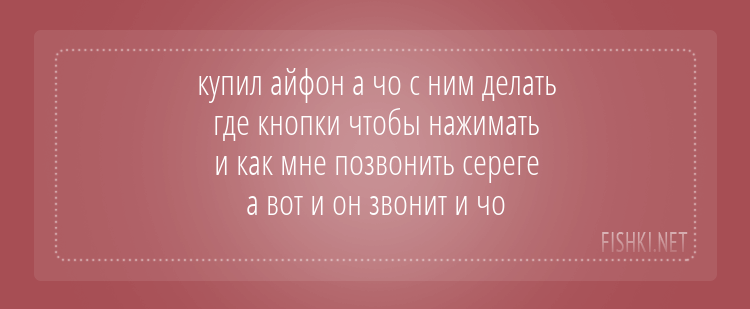Мне говорят: "Оторви жопу от дивана, сделай что-нибудь полезное, все изменится к лучшему". Прибрался, сходил на тренировку, подобрал мусор возле подъезда и разгреб снег. НДС остался 20%, пенсионный возраст не уменьшился. Что я делаю не так? Коктейль «Ленивая Мэри» Просто закуси водку помидором. - Давай выпустим пиво с названием "Будущее". В зависимости от настроения, люди будут выбирать светлое или темное. - Ага. "Тёмное прошлое", "Светлое будущее", нефильтрованное "Мутное настоящее". Можно мне нефильтрованного -------------------- Вырасту стану джипом!!!!! тел. 9148522501 (позывной 02 или ДЖУМ рация Vector - 48 W) мыло: jumanji.magadan@yandex.ru ![]() |