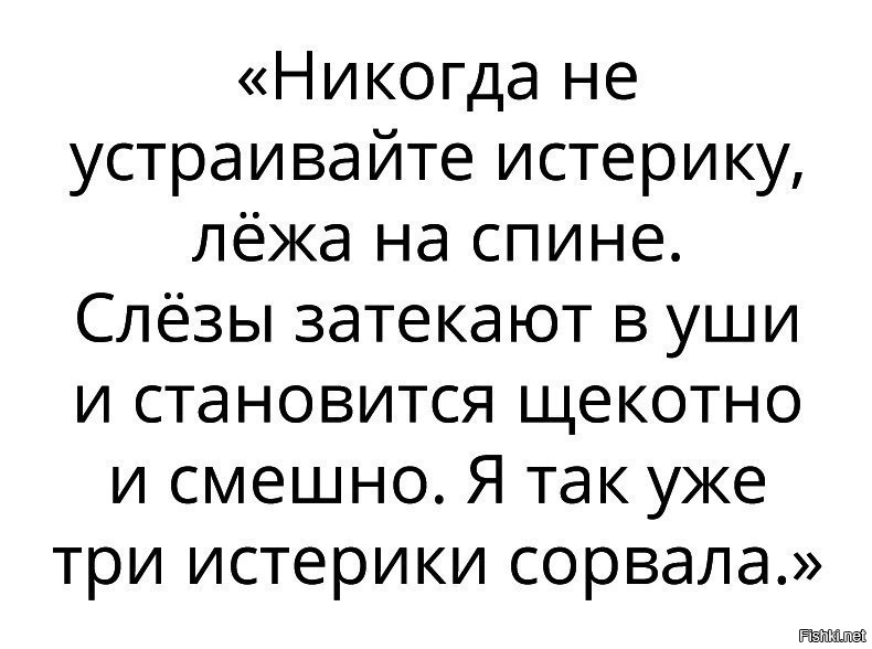 Пока научишься держать язык за зубами, они уже выпадут! У одного ученого была большая библиотека. Однажды его спросили: - Товарищ академик! А на какой самый главный вопрос вы ищете ответ во всех книгах? - Где моя заначка?! Из личного опыта: если девушка орет на парня, но продолжает готовить и убираться, значит, она тоже где-то косячит. -------------------- Ремонт радиостанций,усилителей,сабвуферов 89246918246