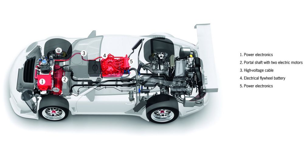 Гибридная технология, используемая в 911 GT3 R Hybrid, уникальна. В качестве базы для новой машины был взят спорт-кар 911 GT3 R, который будут собирать для избранных гонщиков в этом году. Автомобиль-донор оснащен 4,0-литровым горизонтально-оппозитным 6-цилиндровым двигателем мощностью 480 л.с. На гибридной версии авто дополнительно используется 2 электромотора, которые способны передавать крутящий момент на переднюю ось. Электродвигатели получают энергию не от аккумуляторов, а от особого генератора, который установлен вместо пассажирского сидения. Генератор-маховик, раскручивающийся до 40 000 об/мин, получает энергию при торможении, а водитель спорт-кара сможет использовать накопленный заряд в течение 6-8 секунд, получая при этом около 160 дополнительных «лошадей». Подобные системы с прошлого года используются некоторыми командами Формулы-1. -------------------- Переходи на темную сторону!