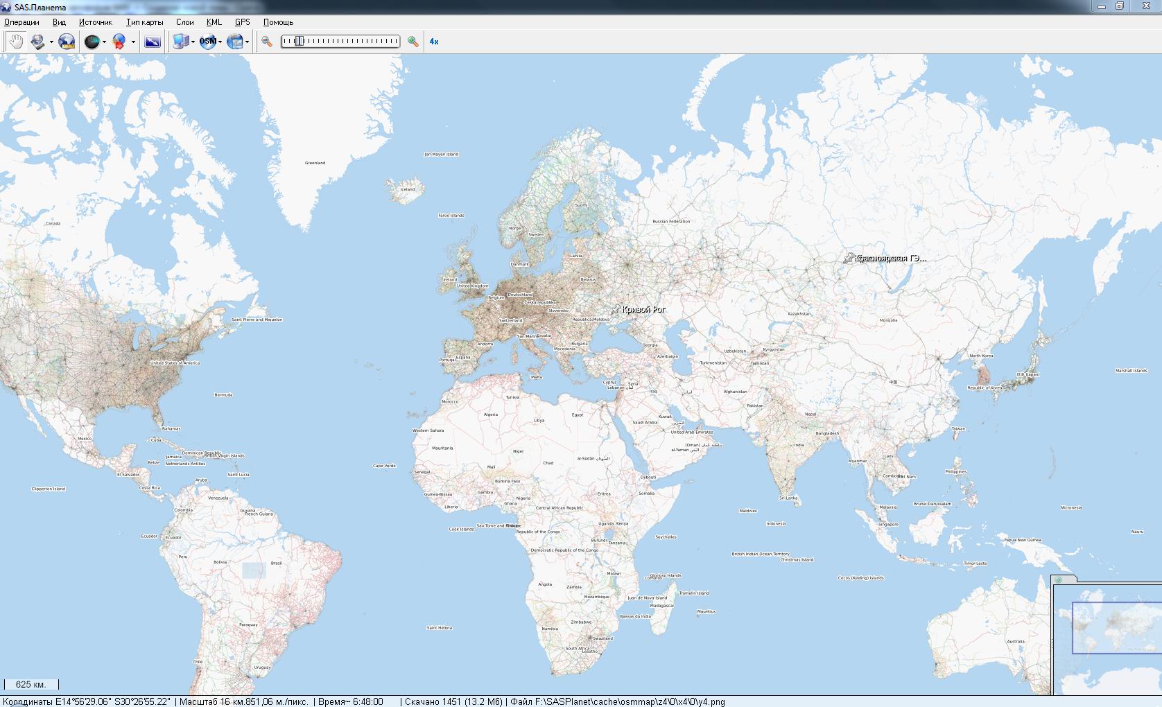 Очень удобная программа, можно качать карты разных производителей, как спутниковые так и топографические. Удобство именно этой программы в том, что закачав один раз, карта сохраняется, т.е. при следующем обращение интернет не понадобится. Выкладываю здесь саму прогу, без карт. В сетку выкладываю и прогу и топографические карты OpenStreetMap, которые хранятся в папке с программой: диск*:\SASPlanet\cache\osmmap В DC++ я под ником Bogdanych и Dorall , папка с содержимым называется SASPlanet (карты постоянно дополняю, в наличии собственно те области, которые интересуют меня, но Вы можете сами докачивать как город отдельно взятый, так и страны) На данный момент кеш порядка 100 МБт, содержит следующие слои: 1х, 2х, 3х, 4х, 5х - карта мира 6х - центральная Европа, Азия 7х - центральная Европа, Россия 8х - территория России и СНГ 9х, 10х - начиная с этого слоя скачано преимущественно территория вдоль условных трасс от г. Магадан до Владивостока, до Москвы, До Питера, а также Белоруссия, Украина, Краснодарский край. 11х и 12х не закачивал 13х - преимущественно территория наиболее крупных городов, вдоль условных трасс от г. Магадан до Москвы, До Питера 14х и 15х не закачивал 16х - только наиболее крупные города по маршруту в слое 13х P.S. Обращаюсь к обладателям безлимитного интернета, если возникнет желание, прошу скачать все слои, это довольно просто, все качается в автоматическом режиме. Детали в личку. Сообщение отредактировал Dorall - 15.2.2010, 2:28