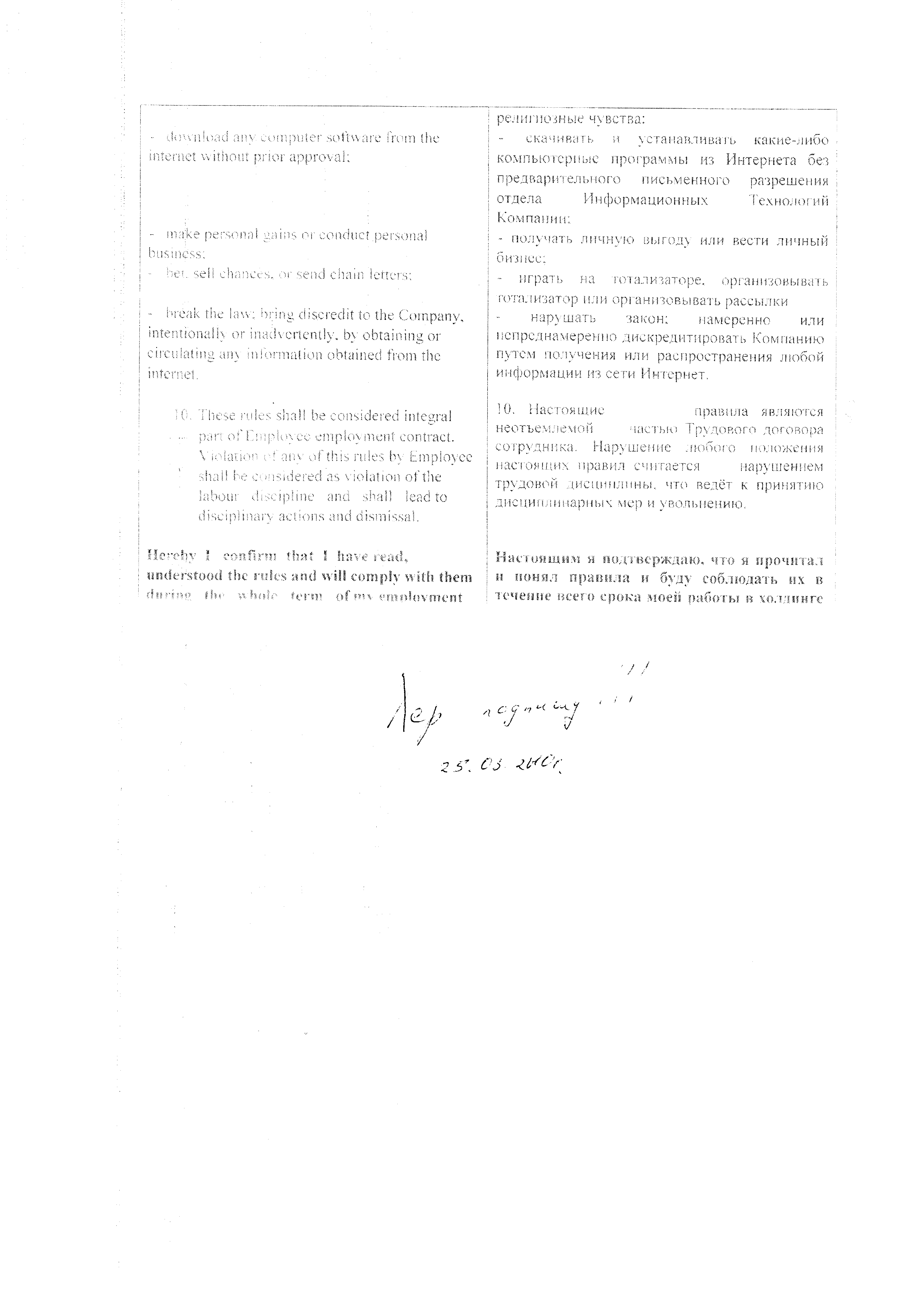 Подскажите пожалуйста и разъясните мне такую ситуацию, мой работодатель держит крупную компанию т.е. холдинг, штат сотрудников большой естественно я веду разговор за конторских работников, у каждого имеется компьютер и интернет, в месяц нам выделяют 100 мб. трафика каждому, я считаю это мизер тк электронная почта не всегда проходит через корпоратив и приходится пользоваться иными системами, скачкой развлечений при таком трафике не займешся, и вот новость сис админы разработали по просьбе шефа чудо документ и приказ родился. Что делать и как с этим бороться??? Если у кого есть аналогичные приложения к приказам дайте мне в личку, подписывать этот бред я не собираюсь и не буду. Извините меня за фрагмент документа, пожалуйста смотрите его тут.