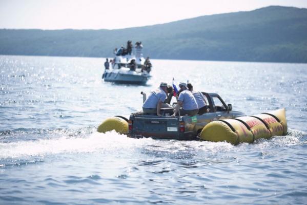 А они далее пойдут с Маттиасом Йешке.... через Берингов пролив. Он тоже специальными понтонами оборудован. Плот тоже с мотором? Какой мощности подвесные моторы на машинах с понтонами? Плот тоже с мотором. Моторы берем зо сильные suzuki. -------------------- ,БОЛЬШЕ ЖИЗНИ, МЕНЬШЕ ПРАВИЛ