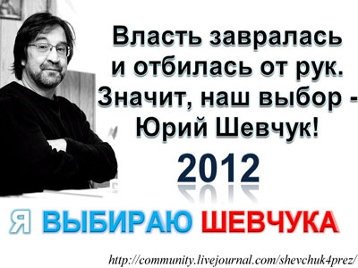 Президент должен быть руководителем, и он не обязан быть компетентным во всех сферах - в них должна разбираться его Команда, а он обязан подбирать тех, кто сможет достойно работать и руководить отраслями. Учите менеджмент, хотя бы основы. Ну либо надо как в америке - кого не поставь в презики (хоть актера, хоть ниггера с баскетбольной площадки) курс страны не поменяется, и всем руководит "серое лобби" из страны обетованной....и неплохо кстати руководит, печатают бумажки, а весь мир на них сидит и жаждет получить их побольше. а вот во главе нашей страны должен быть реальный лидер, поддерживаемый народом. и кому все же интересы Страны дороже чем личная выгода!! Шевчук за годы доказал - что он может говорить правду! И другой альтернативы, способной противостоять тому что сейчас происходит на политическом рынке нет((( Либо создавать нормальное общество, с сильной и умной верхушкой. Но у нас с 90-х одна грызня наверху((( Был бы Лебедь - было бы интересней, но вертолет упал... -------------------- А всё таки прав был Кутузов: что бы спасти Россию надо сжечь Москву!!!
