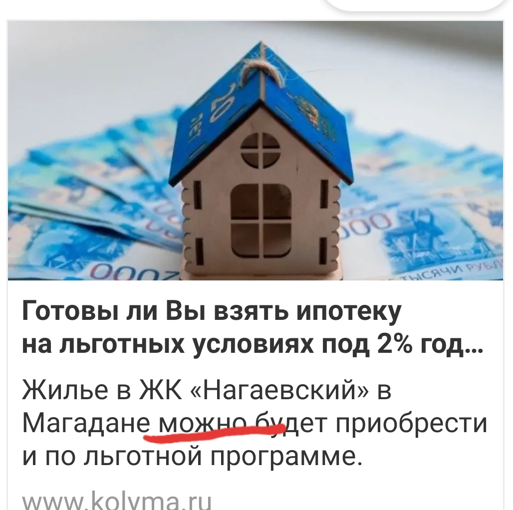 Льготная ипотека будет выдаваться через специализированные агентства, созданием которых начинают заниматься в Магаданской области. Об этом говорил глава Минвостокразвития Александр Козлов на встрече с губернатором региона Сергеем Носовым. Учредителем ипотечного агентства на Колыме выступит правительство Магаданской области.(с) это что б распределить три - четыре квартиры по льготной ипотеке у нас создадут целое ведомство? и я так читаю, что раз агенствА, то это будет не одна структура? о великий и могучий распорядитель пиления гос бюджета!!!! -------------------- Спасибо! — Filmor