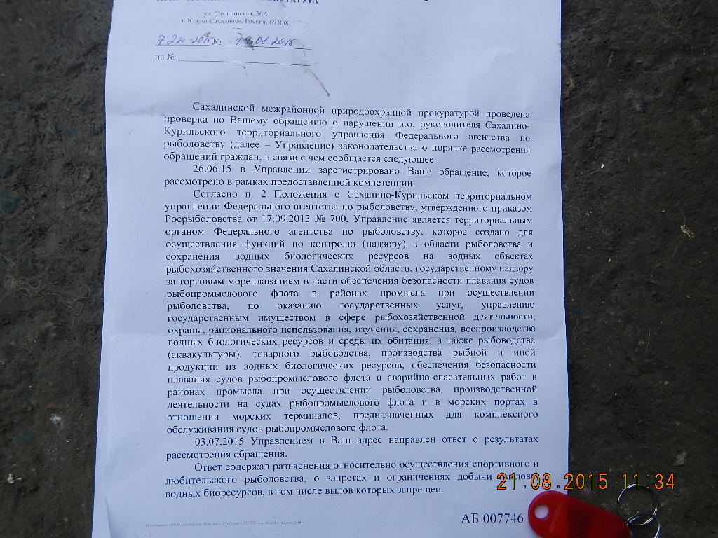 Сахалинский Привет. В отношении Сотрудников ОМВД Долинский и Сахалинко - Курильского территориального управления Росрыболовства в нарушение Законов РФ Требовавших От водителей Документы На провозимую Рыбу Прокурором Сахалинской Области Возбуждено Прокурорское Представление. дело находится на рассмотрении. ссылка доступна только зарегистрированным . законы в РФ кстати везде одинаковые и у вас тоже можно провозить улов без всяких документов