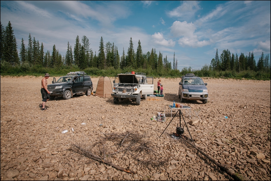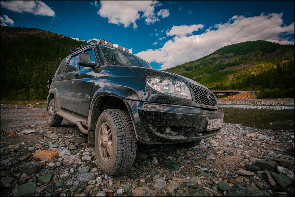 Немного статистики: За отпуск пройдено 22 тыс.км. Спалил 2600 литров бензина. На бензин потрачено 75 тыс.р.(туда-обратно). Итого средний расход 11,3л/100км. Ни одного прокола или серьезной поломки. Из поломок: -Скол маленький на лобовом, камешек от встречной (на трассе стекло - расходник))) ). -На Делянкире от вибрации открутилась ручка открывания капота, упала под ноги. 10 минут поставить на место. -Перед Тындой лопнула пружинка в барабане ручного тормоза. Сняли механизм, доехал без ручника. Когда снимали, забыли один шарик внутри, размолотило. В Могоче купил разжимной механизм в сборе, 250р. Ставить сразу не стал, лень))) Поставил уже в Иваново. -Уже на Кюбюме стал разваливаться китайский аллюминиевый багажник. Выкинул в Могоче. Живого места на нем уже небыло, весь на скрутках. Благо стальной проволоки с собой взял в достатке. -По приезду туда осмотр показал течь заднего сальника на раздатке. Заменили на СТО. Заодно протянули кардан, прошприцевали. -Замки дверей от пыли стали туже открываться, пару раз приходилось смазывать. Вот вроде и все. В плане удобства Патриот тоже оказался вполне неплох. Кондиционер работает отлично. Весь путь туда он не выключался. Мы практически месяц жили в машине. 2 взрослых, ребенок 12-ти лет и собака. Хорошо, что сделал какую ни какую "шумку", без нее было бы не весело))) Когда едешь с открытыми окнами, особенно на скорости больше 60-70,от шума аж уши закладывает. Окно закрываешь и ок, тишина. Ну это в кратце, соберемся встретится можно и подробнее рассказать. Ну и маленькая толика фотографий. -------------------- Водитель УАЗа не должен быть мнительным!