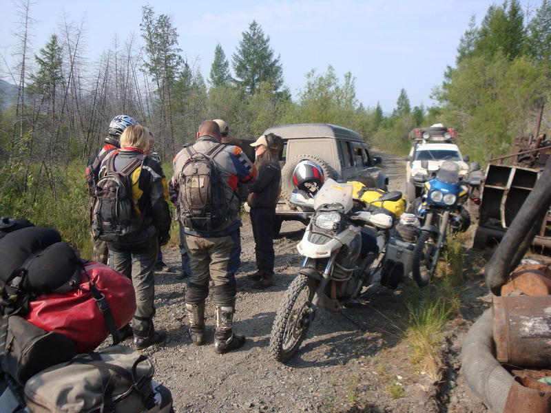 И вот после недолгих сборов в обед третьего августа всоставе двух сафарей на 42 дизелях в 60-ых кузовах, один атмомеханика 33"второй турбоавтомат стоковые колеса, и команда 4 человека и собака выдвинулисьна север. По плану первая ночевка должна быть на речке Гербе, наОмсукчанской трассе. До нее доехали совсем без проблем, пыли много не было ижара особо не донимала. И мы не спеша к вечеру докатили до места стоянки.Расположились и Владимирыч поймал первую рыбку на ужин Ну а дальше был первый праздничный ужин сон и с утра кто то,попив чая, а кто то, похмелившисьвыдвинулись дальше к нашей цели. Дорожники молодцы, дорогу сделали хорошую…нопыльная шопипец...Наша скорость была около 80 км/ч, но попутные фуры тормозилиее до 40-50, потому что в пыльной мглеобогнать их не было никакой возможности, так не спеша добрались до Колымы. Тампередохнули и двинули дальше. Пытаемся приблизится к попутному Камазу жара и пыль становились только хуже. На Бурхалинскомперевале Турбосафарь закипел, жара стояла за 30. Остановились около сворота на Мяунджу, от Магадана отошлина 700 км, федералка уходит прямо, а намсворачивать налево от цивилизации на Старую дорогу, вдали белел многоэтажкамиброшенный Кадыкчан. Перекусили тушенкой и двинули дальше, было уже около 9часов, а ночевать по плану должны встать у метеостанции Эмтегей, до которойбыло еще больше 30 км по Старой трассе. За 2 года этот участок дороги не ухудшился, а наоборот сталболее накатан и мы попали с самую малую воду, там, где раньше было по капот,сейчас максимум по колесо Самое опасное было напороться в луже в бревно, так чтопроходили их максимально медленно. Через полтора часа докатились до метеостанции Эмтегей, ирасположились на косе. На этом месте решили провести 2 ночевки. Место достаточно оживленное, живет абориген Андрюха, останавливаютсястаратели, и рядом с нами встали трое Сусуманских мужиков на Урале. В общем, отдых удался, и с погодой повезло Налим горячего копчения был просто изумителен Полдник дикого колымского человека Но надо ехать дальше, и позавтракавши выдвинулись. Перед своротом на Адыгалах встретили Намцев на 3-хмотоциклах и 120-ый прокачанный прадикподдержки. Бедные немцы, на улице +30, а они запакованные в свою амуницию, чтоодни глаза видны. Первый вопрос от немцев был типа почему вас комары некусают…на что Стас пошутил « наши комары своих местных не грызут» Продолжение следует... -------------------- Какой смысл покупать машину, чтобы разъезжать по асфальту? Там, где асфальт, ничего интересного, а где интересно, там нет асфальта.