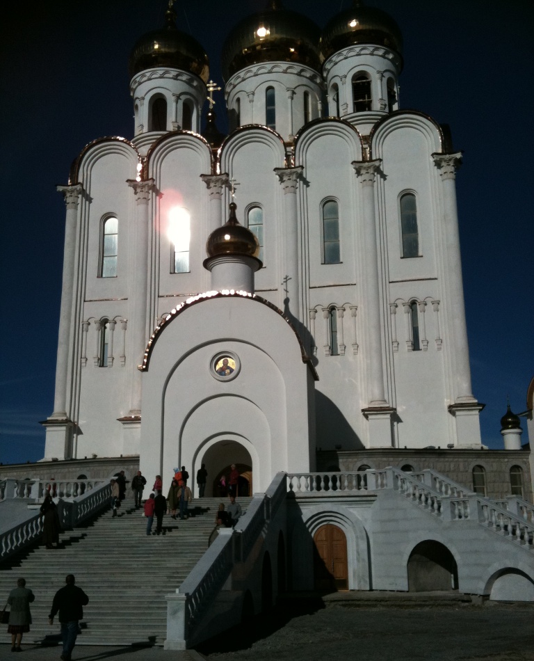 Патриарх Московский и всея Руси КИРИЛЛ вечером 31 августа прибудет в столицу Колымы, и уже на следующий день освятит кафедральный Собор, построенный как храм-памятник жертвам политических репрессий. Вместе с главой Русской Православной Церкви (РПЦ) в Магадан прибудут архиепископы из разных регионов страны. Среди них — архиепископ Челябинский и Златоустовский ФЕОФАН, при котором в областном центре в начале 2000-ых и началось возведение Свято — Троицкого кафедрального Собора Собор пятизакомарный, пятикупольный со звонницей, с верхним и нижним храмами. Здесь также расположены крытое гульбище, церковно-приходская школа, конференц-зал, трапезная, крещальня, мастерские и помещения инженерного обеспечения. Высота Храма — более 70 метров. В течение долгого времени его стены и купола расписывали мастера иконописной артели «Преображение» из села Палех Ивановской области. В нижнем храме, который рассчитан на 500 прихожан, священнослужители Магаданской и Синегорской епархии планируют проводить повседневные службы, а в большом верхнем храме — торжественные богослужения на двунадесятые праздники. Здесь способны вместиться до 2000 верующих. сегодня в 21.00 колонна ушла в Аэропорт встречать гостей - завтра на площади в 10.00 часов состоится открытие кафедрального Собора видео для Айфонов внутри собора (Any Video Converter)
