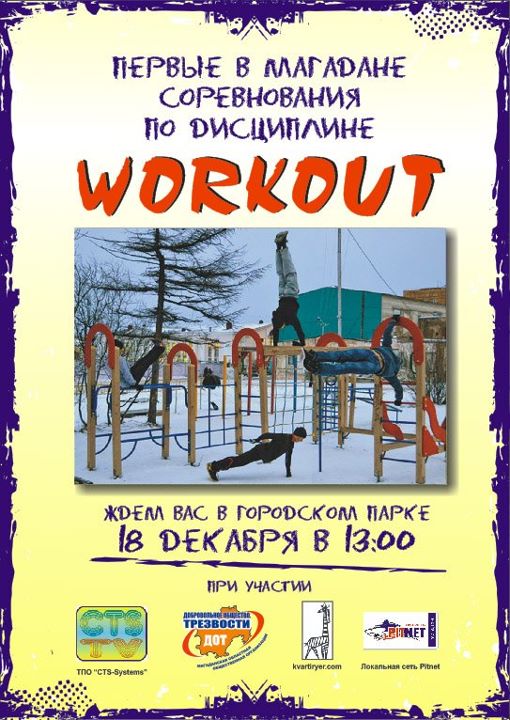 18 декабря 2011 г. в городском парке состоятся первые соревнования по Воркауту. Начало в 13.00 Приглашаются все