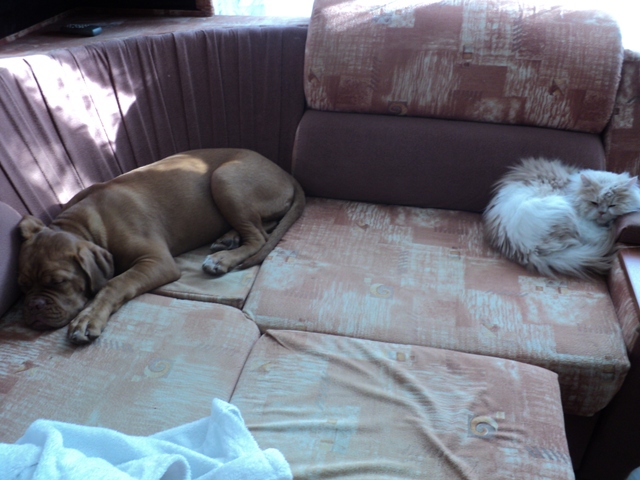 у нас Прадик всегда с переди ездил,морда в окне(очень нравилось когда ветерок в мордочку