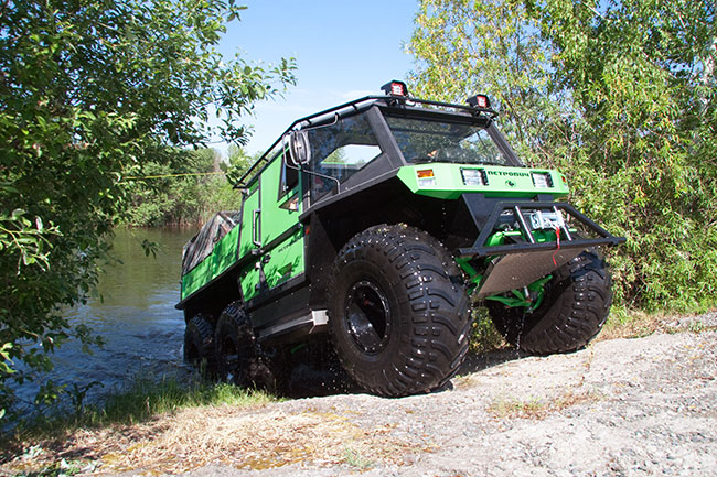 Сообственно сам вездеход. Модель "Петрович" 204-60 1. Модель "Петрович" 354-50 2. как вариант вездеход для МЧС 3. Собирает это чудо компания "Экотранс". Основные идеи: Не портить лесной и тундровый покров. CODE Тех.Данные: Двигатель, тип Турбодизель R4 Объем двигателя, см3 1929 Максимальная мощность, л.с. @об/мин 90@4200 Макс. крутящий момент, Нм@об/мин 160@2800 Трансмиссия 5 МКПП + 2 РК Тип привода 6х6 Максимальная скорость, км/ч по шоссе/на плаву 70/5 Снаряженная масса, кг 2600 Грузоподъемность, кг 1000 Емкость топливных баков, л 100х2 Размерность шин 1300х600х533 15 марта 2010г. была начата сборка такой машины для Магаданцев. ( пока только один такой есть в Магадане) вот как это было. [attachment=120571:DSCN0294.JPG] [attachment=120572:DSCN0289.JPG] [attachment=120573:DSCN0300.JPG] По проходимости отзывы не плохие. Сообщение отредактировал AntiM - 25.1.2012, 0:37 -------------------- ZZtop жог!! и мы будем Жечь!!! .