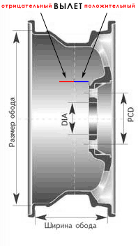 P.S Может я и ошибаюсь... Что такое ВЫЛЕТ диска? вы можете узнать если посмотрите на картинку. Вынос диска измеряется в миллиметрах, бывает ПОЛОЖИТЕЛЬНЫМ, если ступичная часть диска смещена во внешнюю часть (относительно центра в разрезе) и ОТРИЦАТЕЛЬНЫМ, если ступичная часть диска смещена во внутреннюю часть (относительно центра в разрезе). Изменение ЕТ допускается в пределах 10мм. -------------------- [Team Мирный Танк] [Guardians Of The Blind Team]